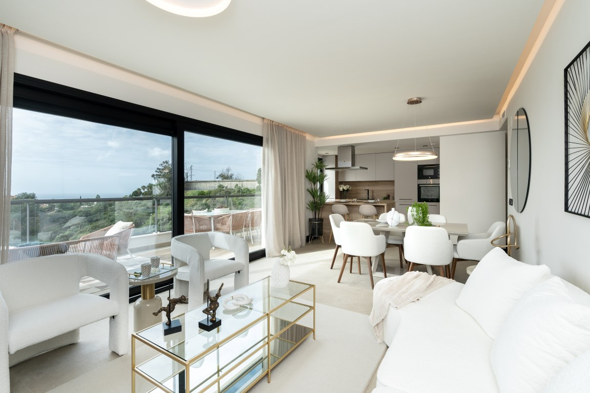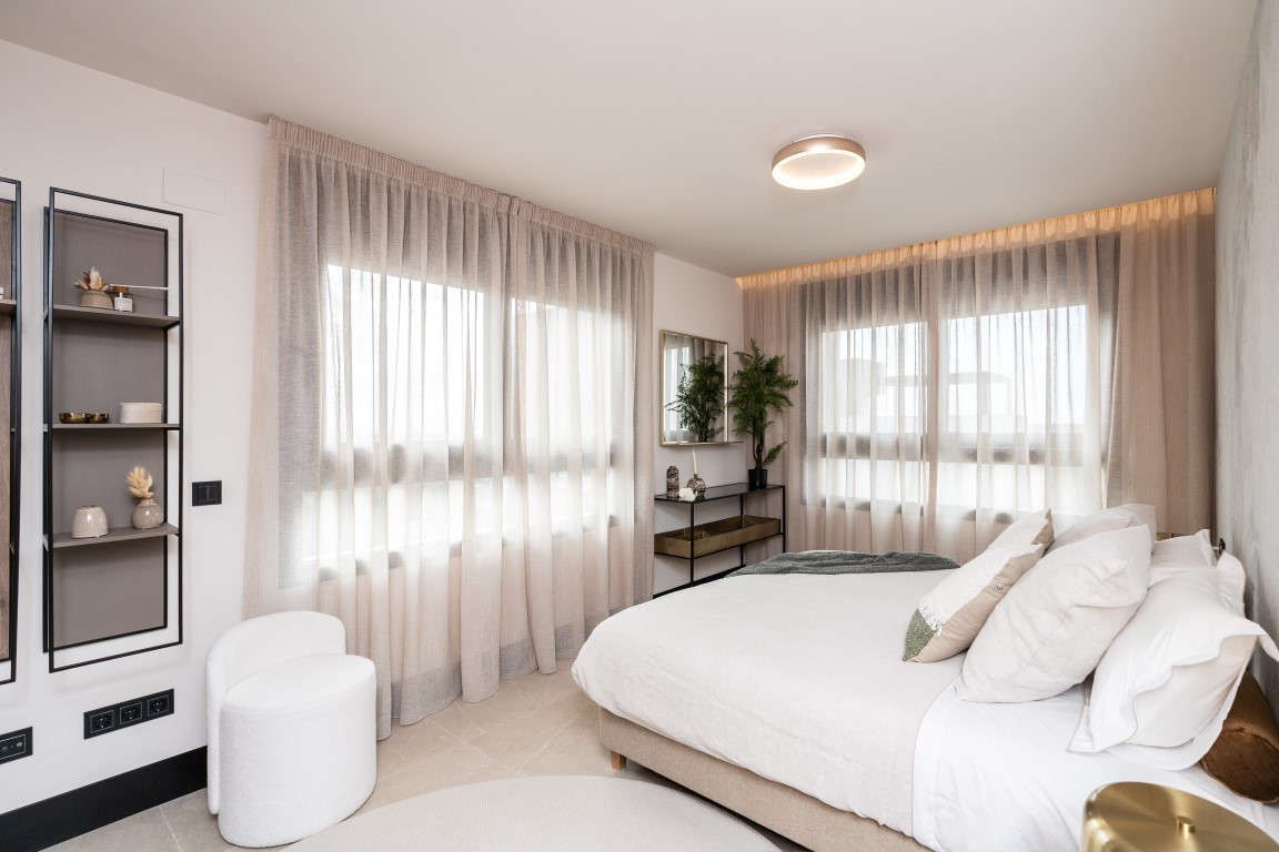 The Marbella Lake project has been designed to ensure that all of the homes enjoy impressive panoramic views from the generously sized terraces and living rooms. Architecture in the communal areas at Marbella Lake is inspired by the “Boho Chic” and “Country Chic” aesthetic concepts where natural materials and colours are combined to blend into the local scenery in a balanced way, favouring a relaxed ambience and an escape to peaceful surroundings.