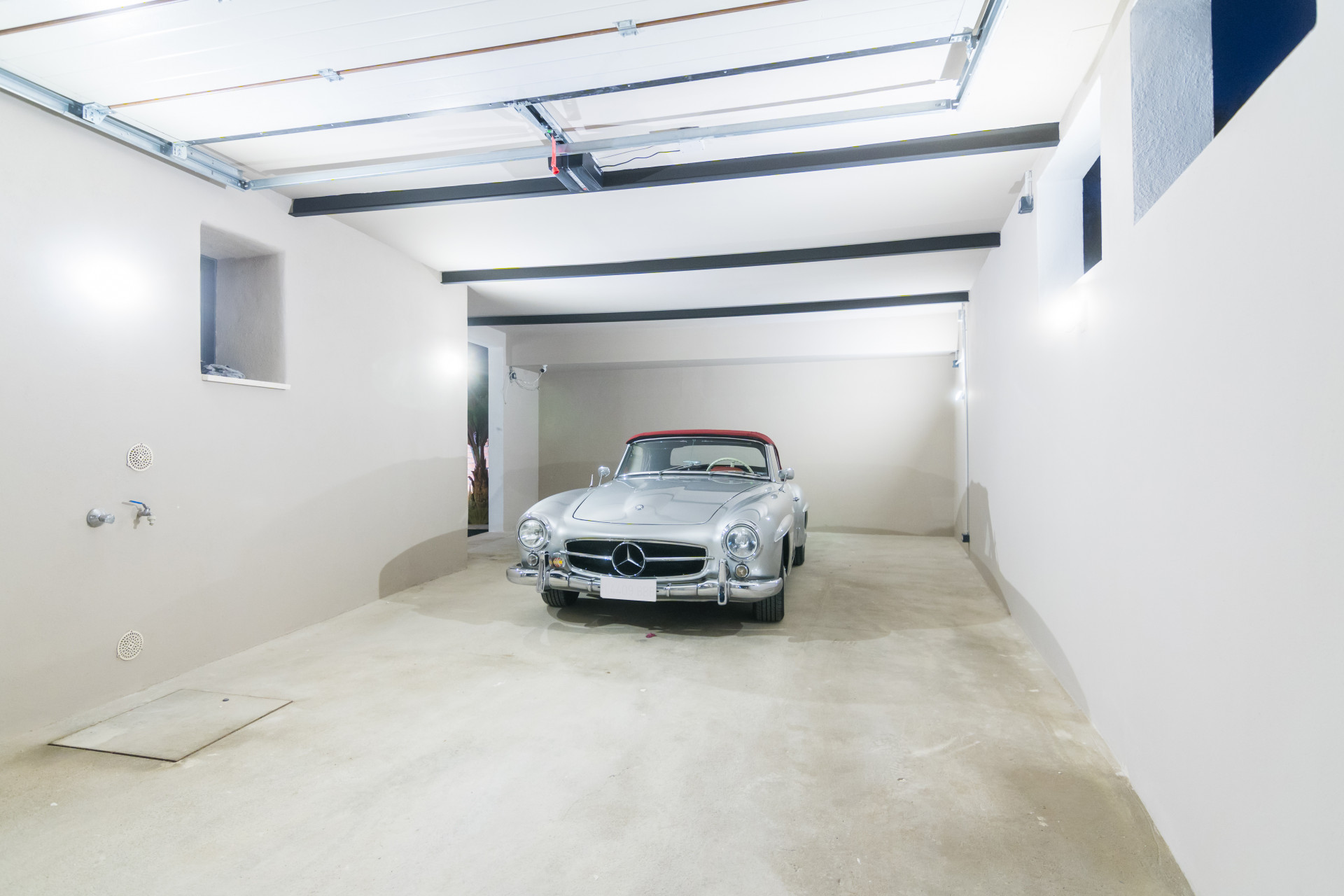 Set on a 500 m² plot, the villa is distributed over three levels. On the main floor, we find the master suite with 5.30 m ceilings and a 200 × 200 cm bed, along with a spacious living room, dining room, modern kitchen, guest toilet and laundry room connected to the garage. From here you can access a 50 m² outdoor area with a dining area and chill-out area under a pergola, as well as a swimming pool and jacuzzi. The 42 m² garage offers space for two vehicles and bicycles.