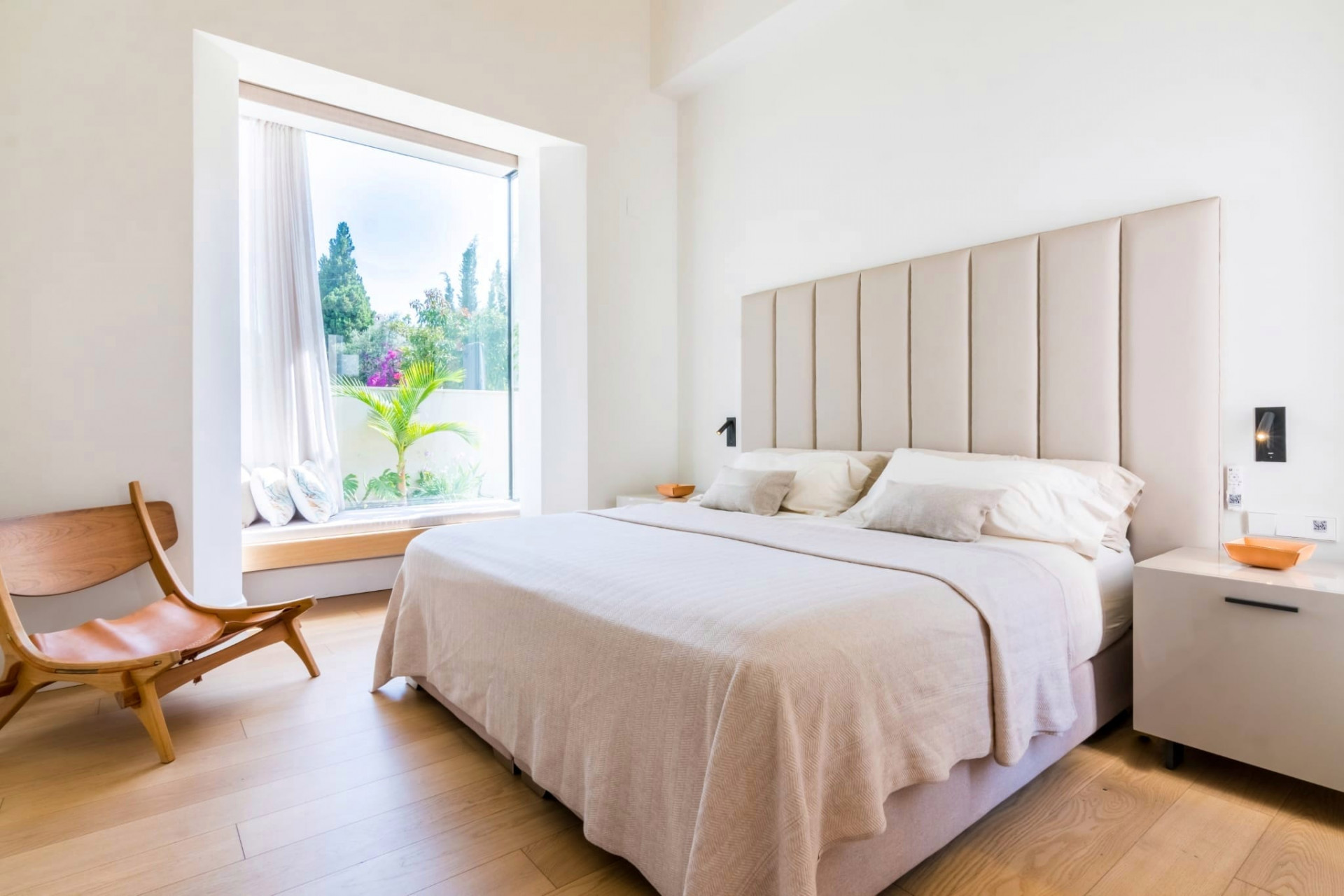 JUST-R0007Contemporary villa built in 2019 in a Californian-Mediterranean style that combines modern, clean lines with a fresh and bright exterior. Its interiors stand out for their elegance and minimalist design, with ceilings at least three metres high, reaching up to 5.30 metres in the master bedroom, providing spaciousness and sophistication.