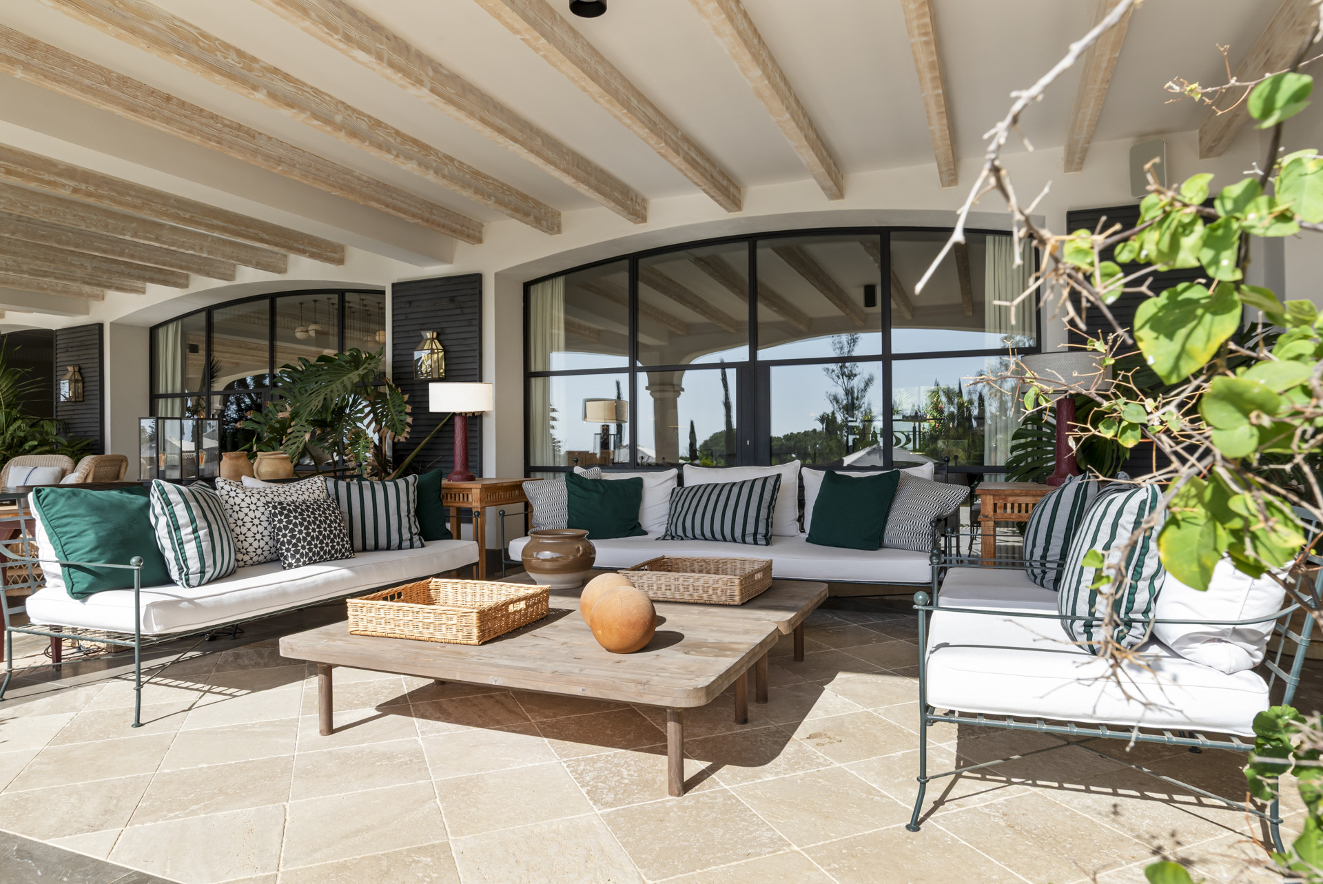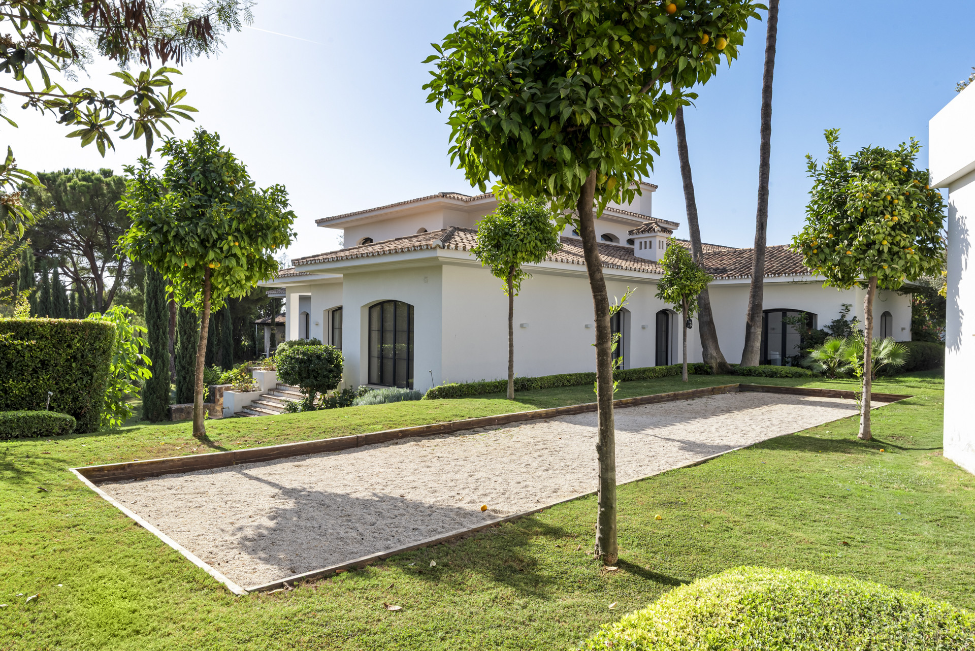 Outdoors, the estate opens to expansive terraces, a large swimming pool overlooking the sea, and serene gardens that capture the romance of Andalusian architecture. Alfresco living reaches new heights with multiple dining areas, BBQ stations, a fire pit and reading nook, and a paddle court with night lighting and ocean views.