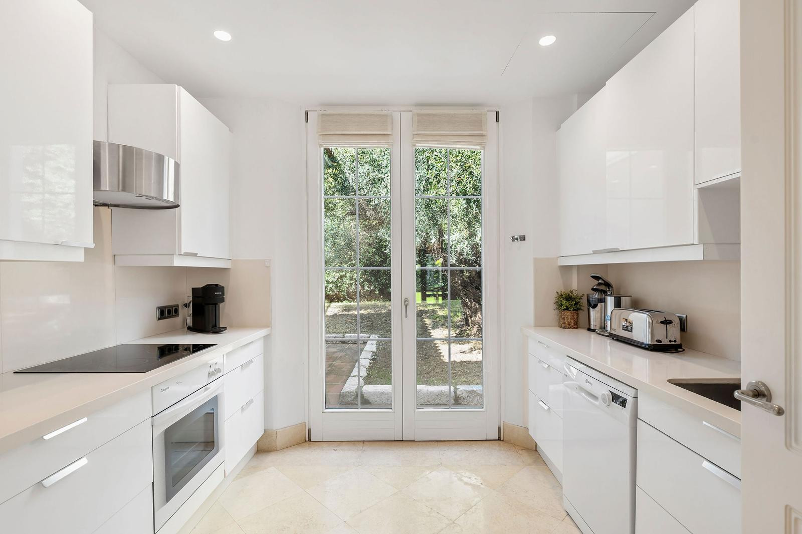 As you approach the villa, you are welcomed by two separate entrances. The first leads through a private garage, while the second, a charming pedestrian gate, invites you to enter at a slower, more relaxed pace.