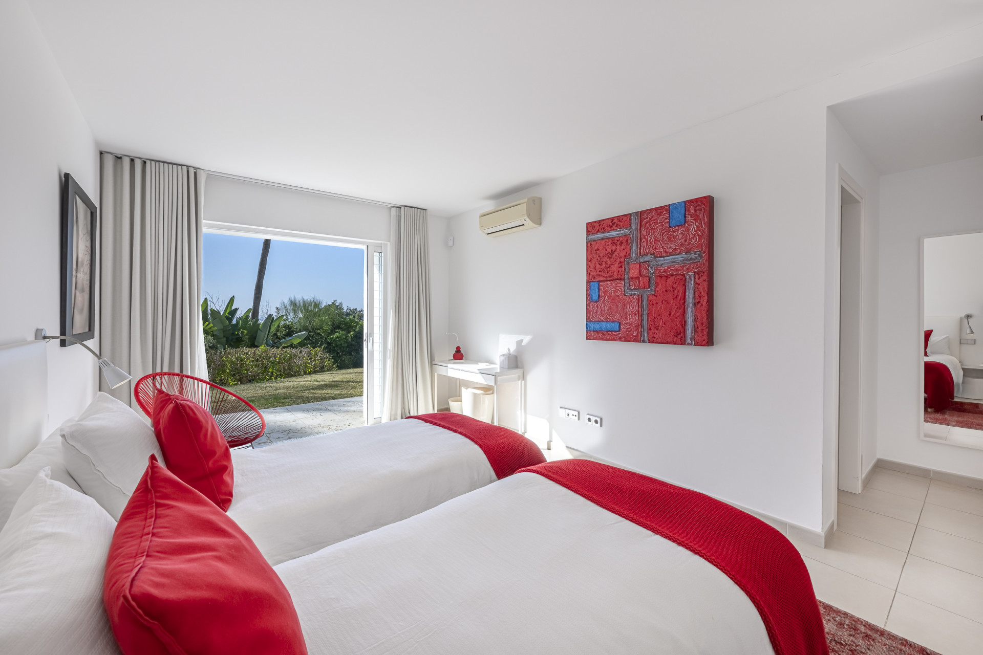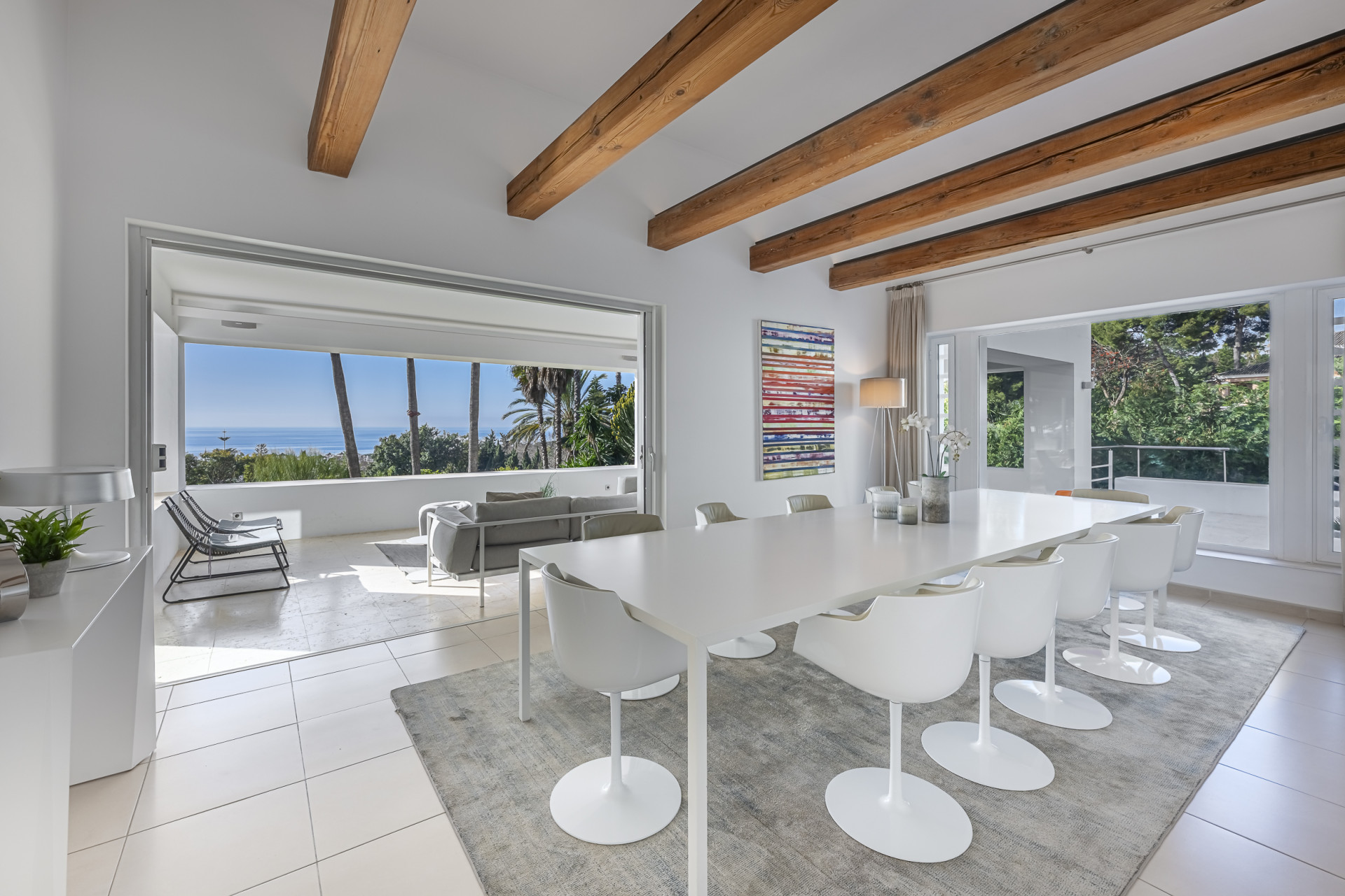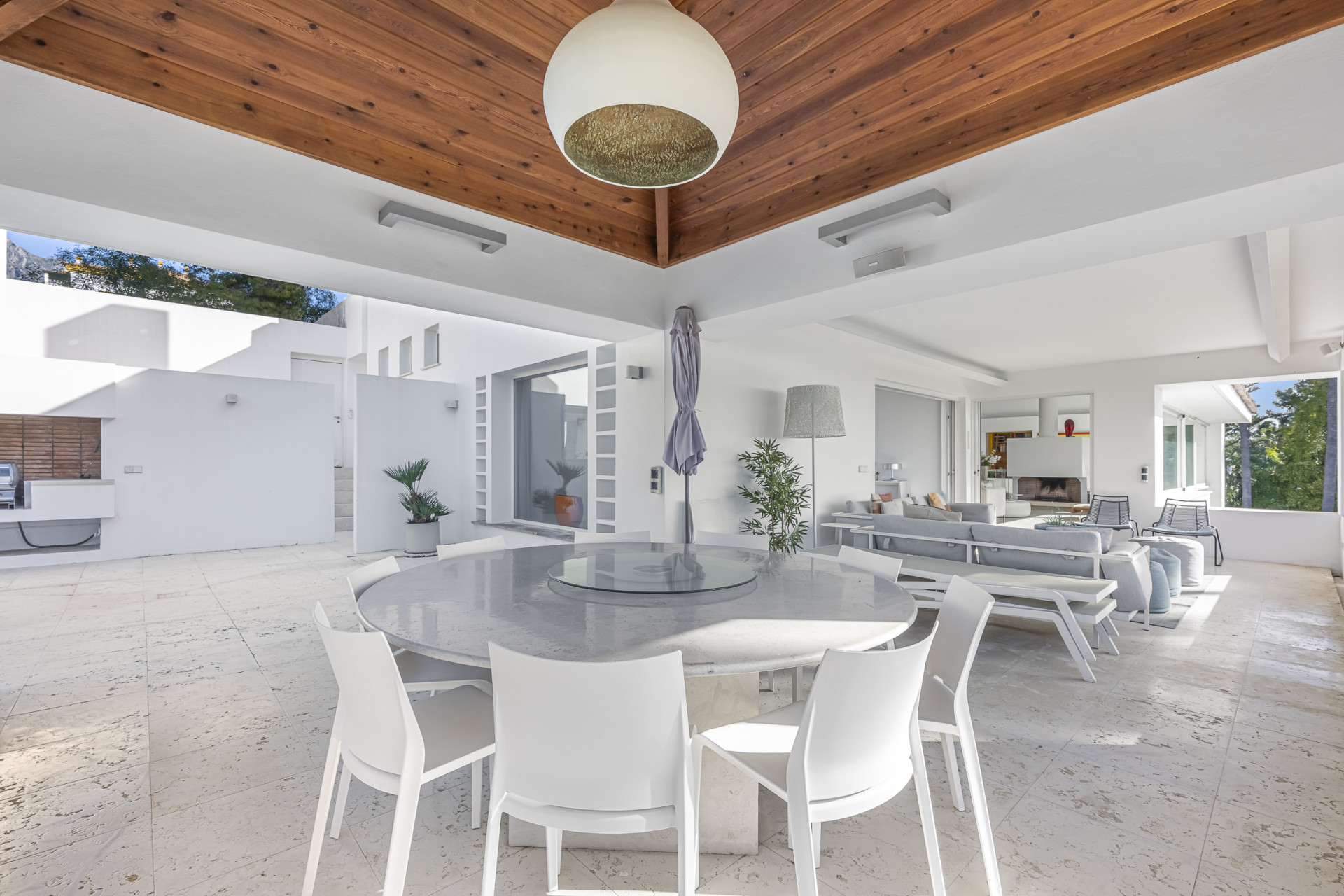The property has been designed to embrace outdoor living all year round. Its spectacular private heated swimming pool blends seamlessly into beautifully landscaped tropical gardens, creating an oasis of calm and sophistication. Expansive terraces, conceived as true extensions of the interior spaces, provide the ideal setting for sunset gatherings, seaside lunches, or moments of relaxation in complete privacy. As a unique feature, the villa boasts its own private chiringuito — a charming space full of character, perfect for unforgettable celebrations and gatherings.