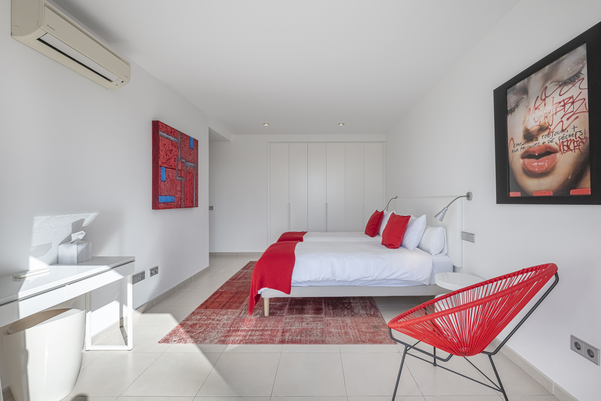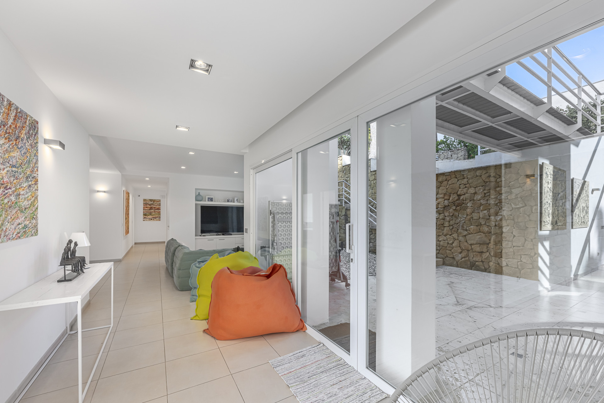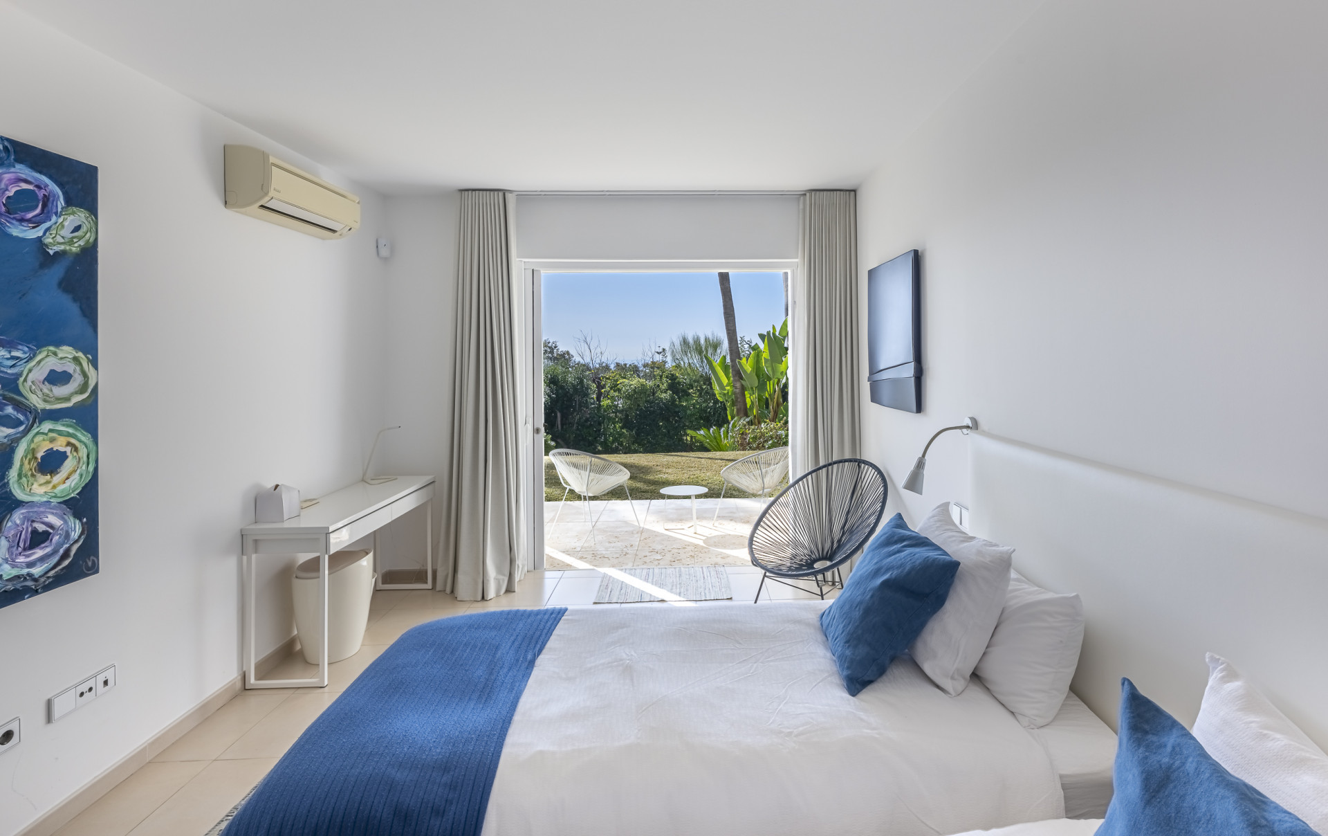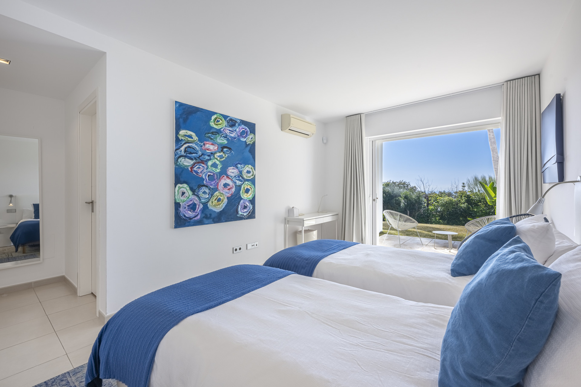 The property has been designed to embrace outdoor living all year round. Its spectacular private heated swimming pool blends seamlessly into beautifully landscaped tropical gardens, creating an oasis of calm and sophistication. Expansive terraces, conceived as true extensions of the interior spaces, provide the ideal setting for sunset gatherings, seaside lunches, or moments of relaxation in complete privacy. As a unique feature, the villa boasts its own private chiringuito — a charming space full of character, perfect for unforgettable celebrations and gatherings.