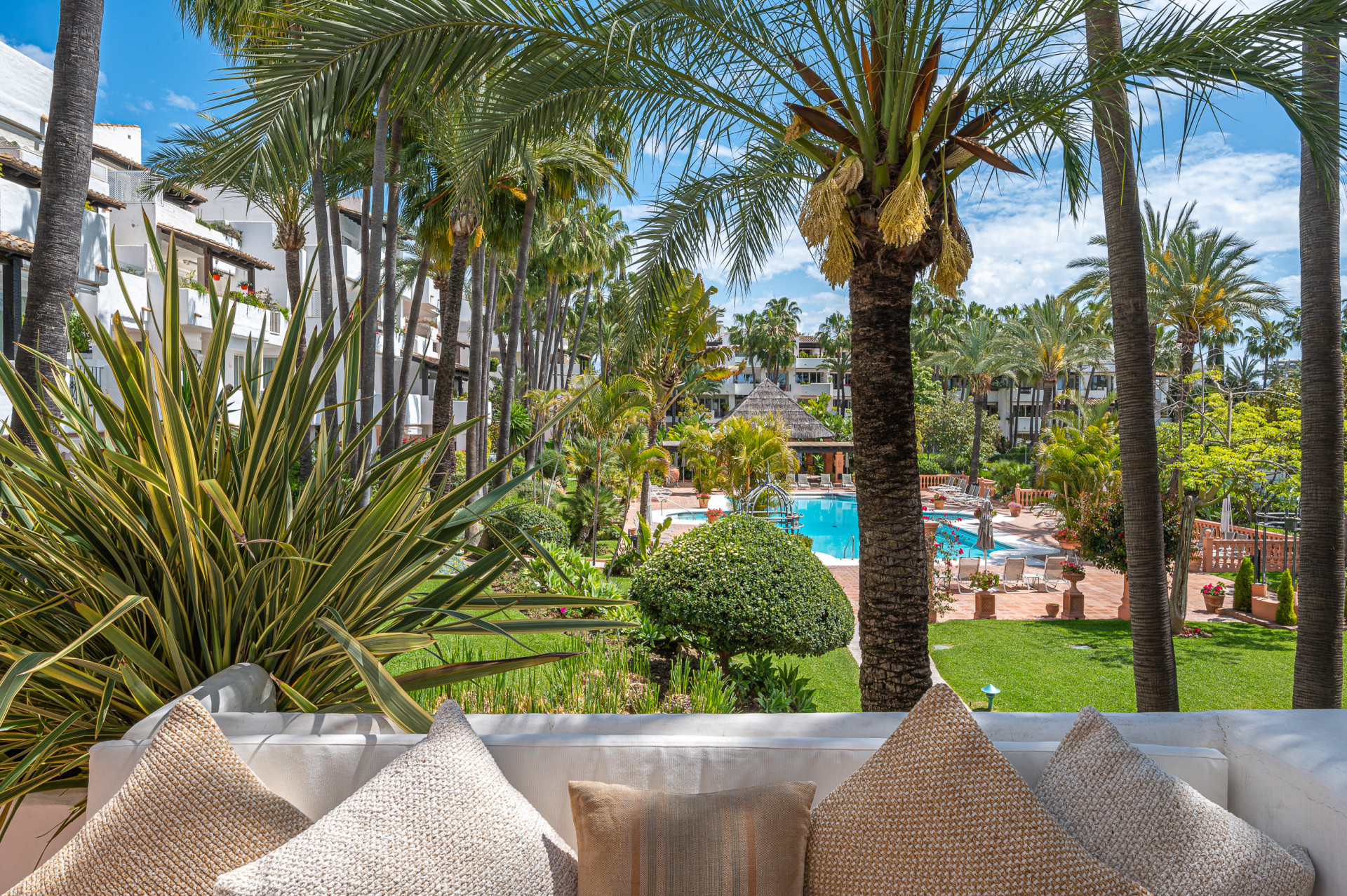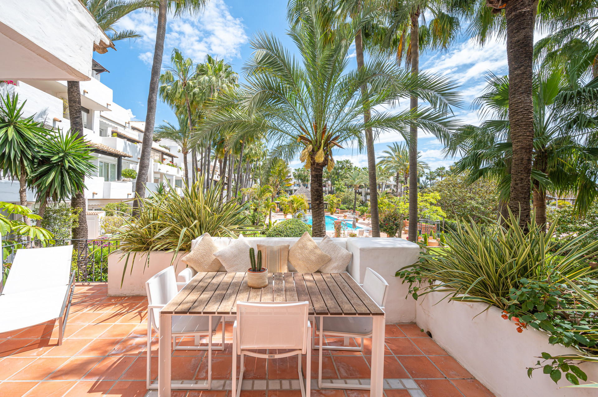 Set within an exclusive residential complex surrounded by lush Mediterranean gardens and a serene communal pool, it enjoys an unbeatable location, just a short stroll from the beach and Marbella’s vibrant town centre.