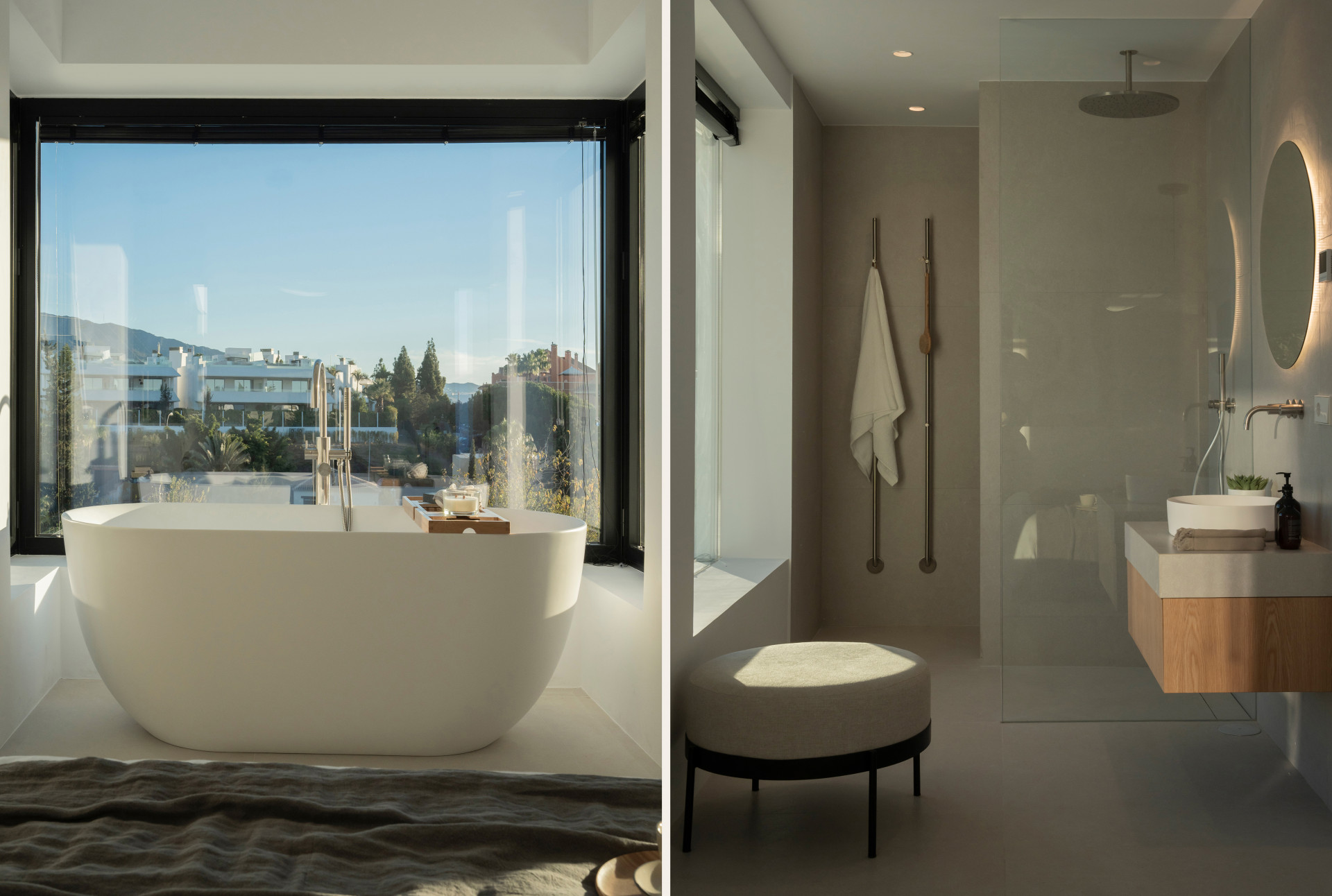 855-00105PTucked away in the serene setting of lower Nueva Andalucía, this exquisite residence is designed to harmonize with its natural surroundings while framing magnificent views of La Concha and the Mediterranean. Spanning two levels, the home is defined by expansive windows and sun-drenched terraces that invite you to slow down and savor the scenery.