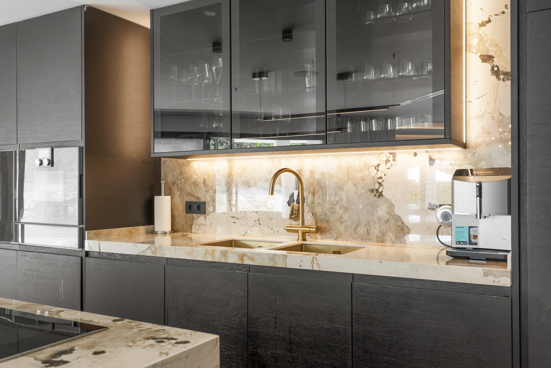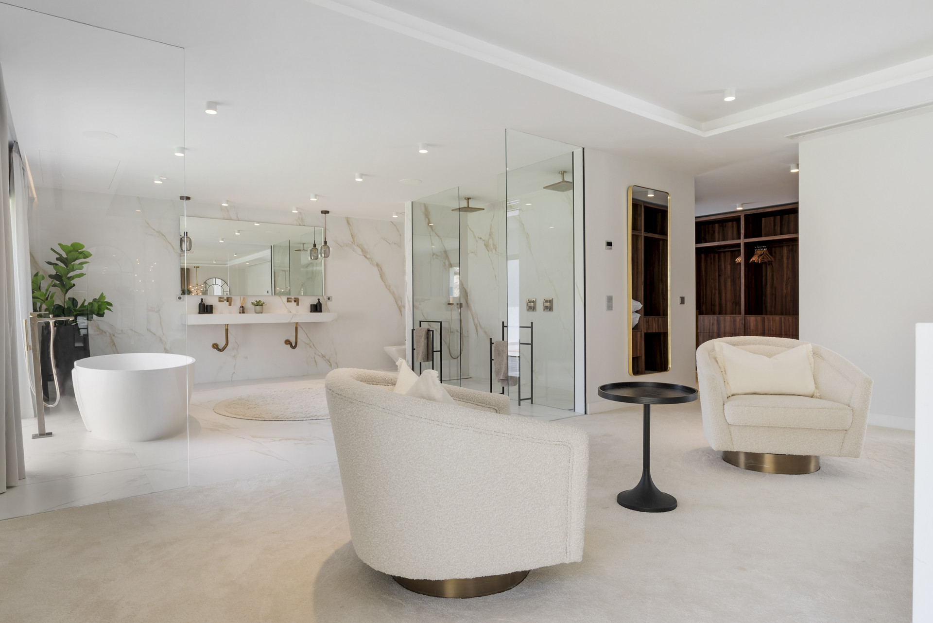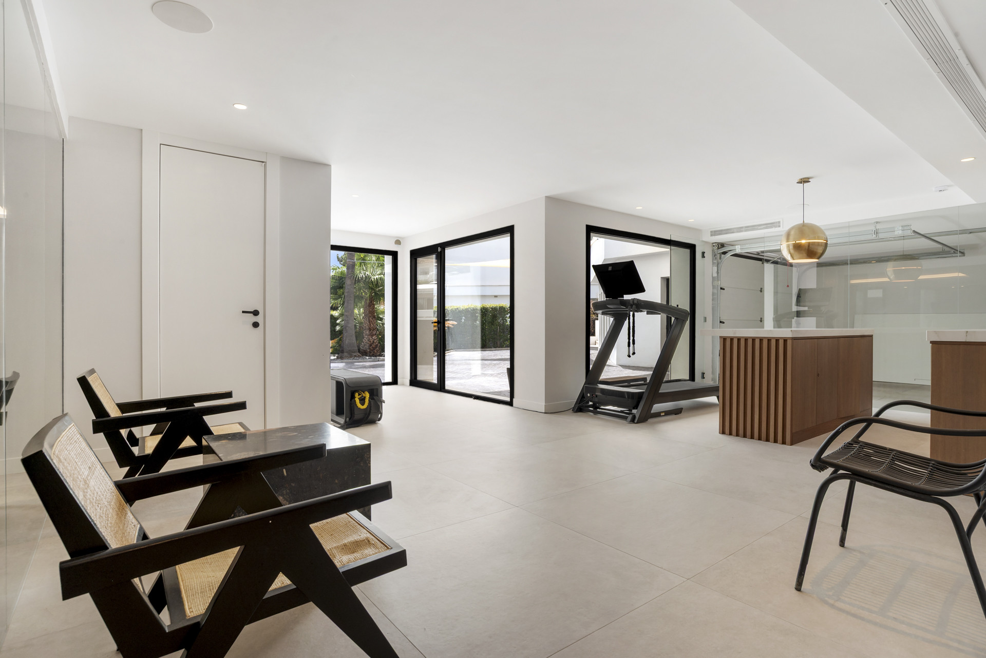 Designed for both grand entertaining and serene everyday living, the villa showcases expansive, light-filled interiors with soaring ceilings and fluid open spaces. The main floor features a stunning living area with a statement fireplace, seamlessly connected to a formal dining room and a state of the art Gaggenau kitchen. Floor-to-ceiling doors invite the outdoors in, opening to a private oasis with manicured gardens, a sparkling pool, jacuzzi, and an al fresco kitchen, perfect for hosting unforgettable gatherings or enjoying quiet moments in complete privacy.