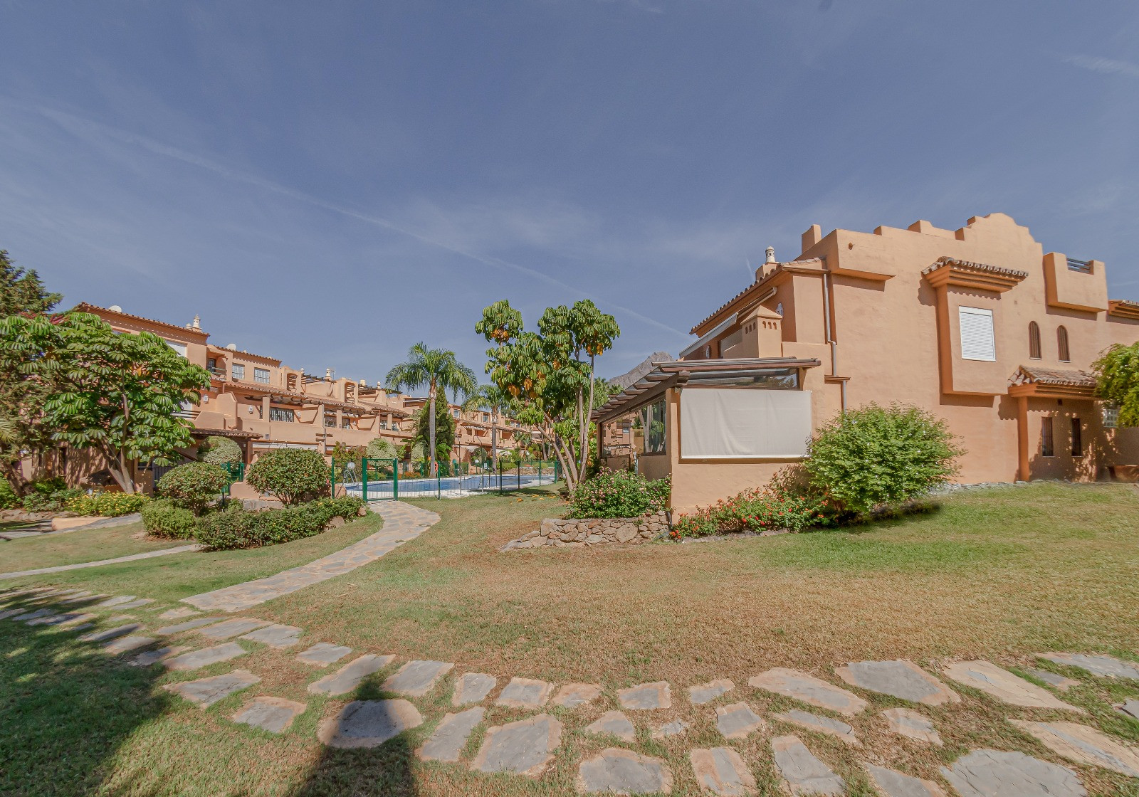 West-facing 3-bed on the Golden Mile with pool & gardens
