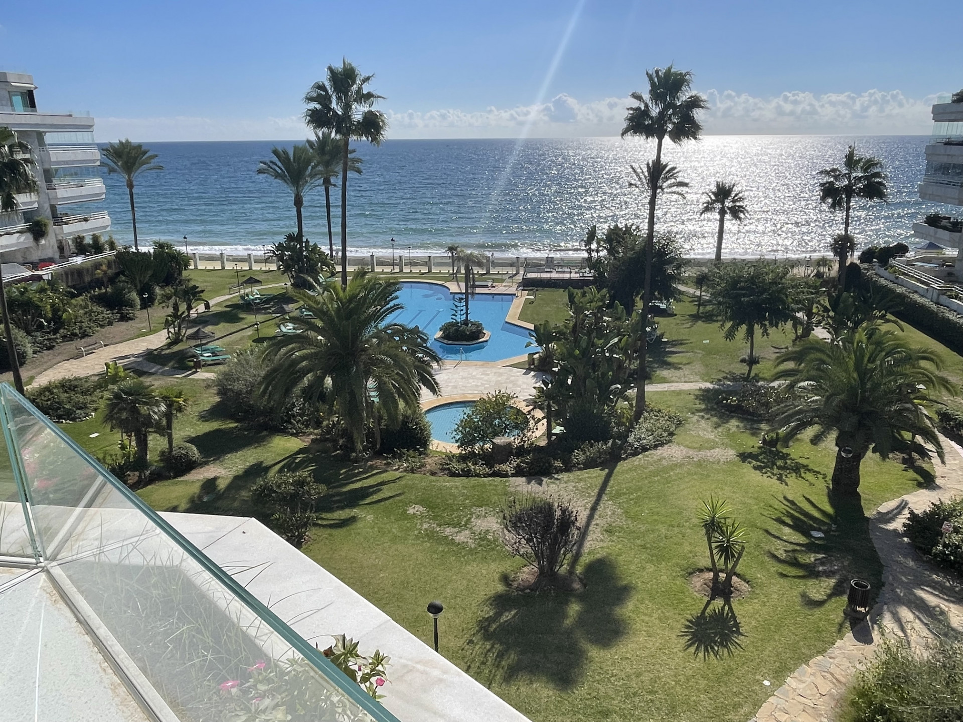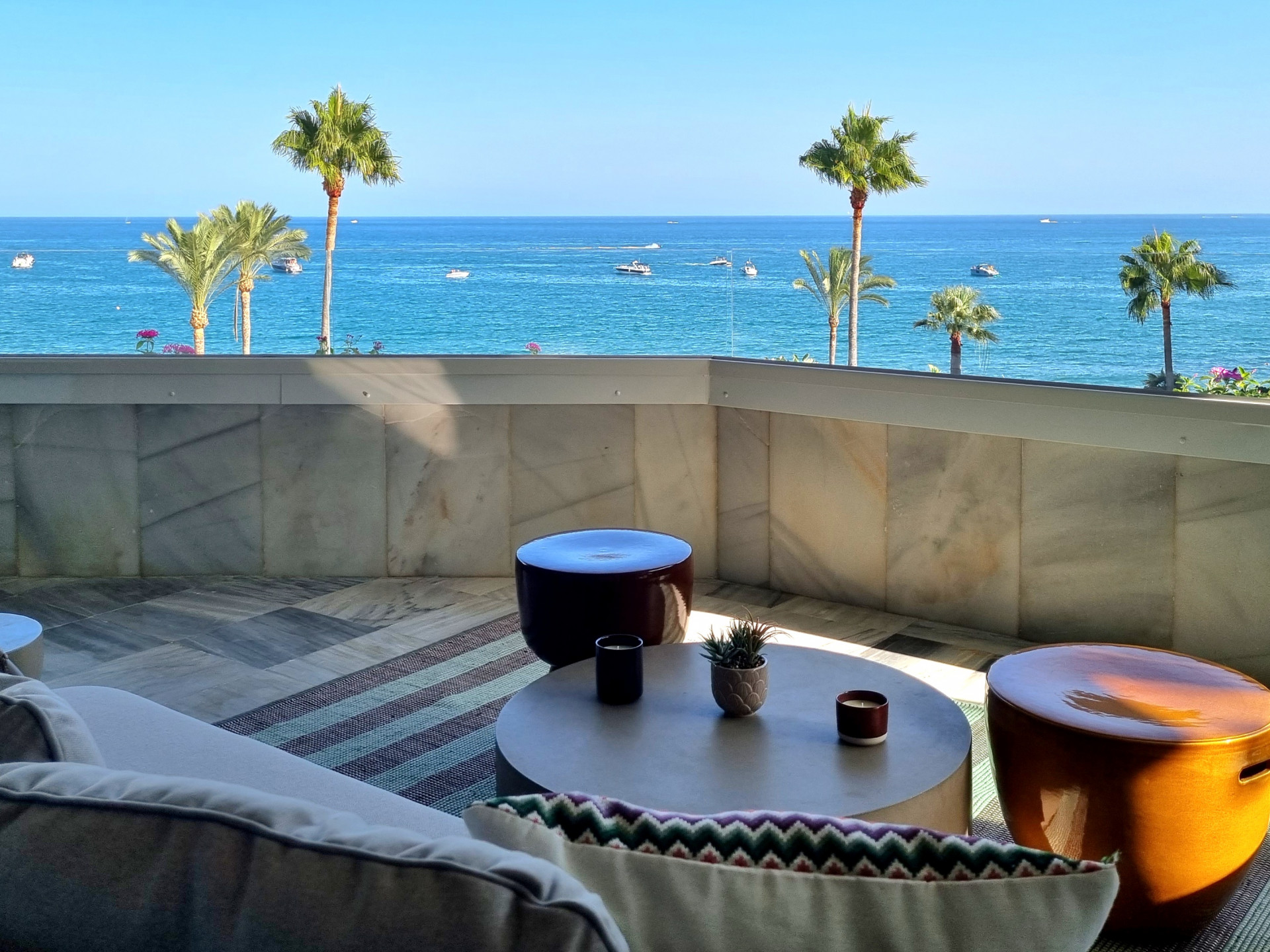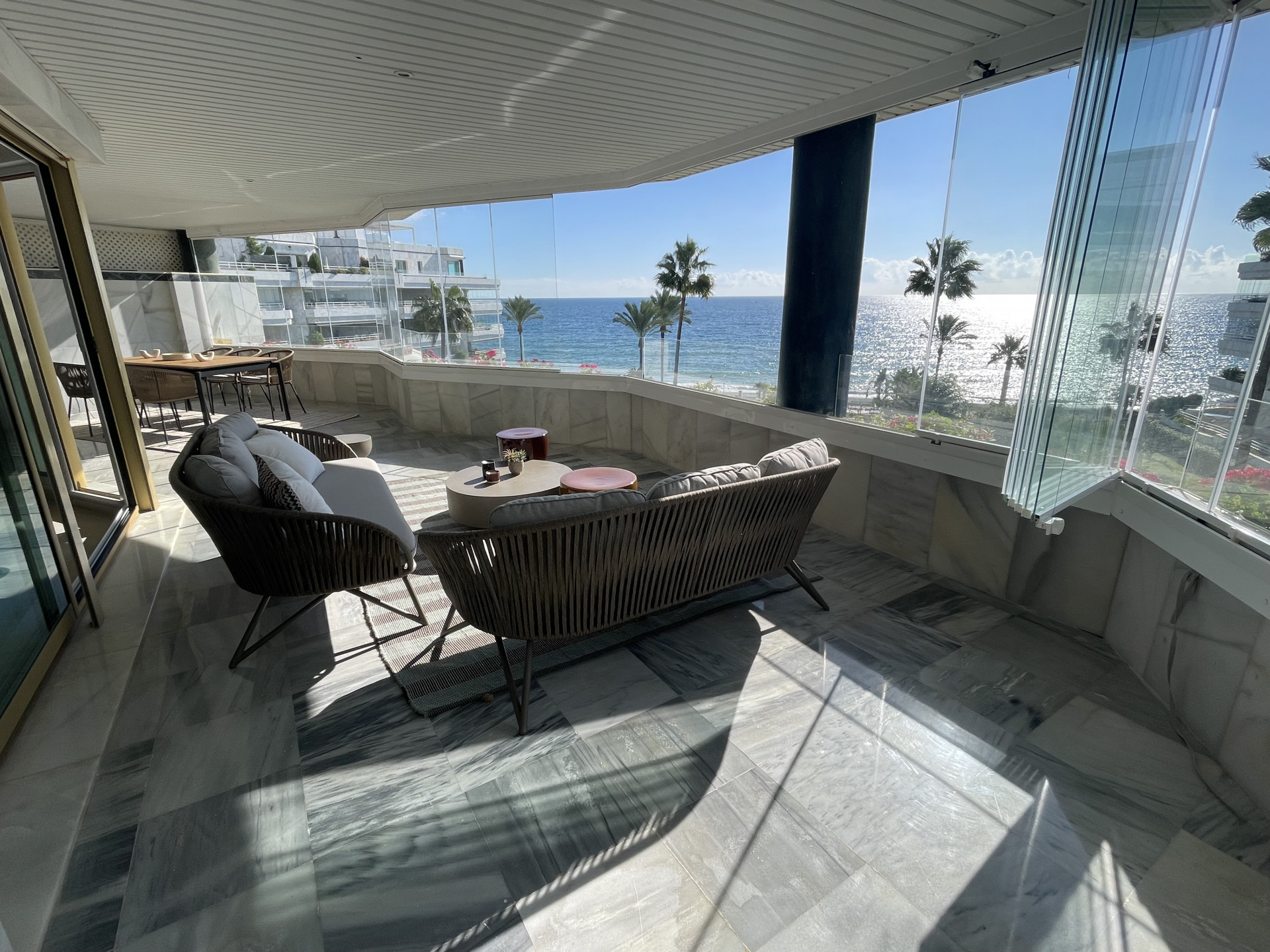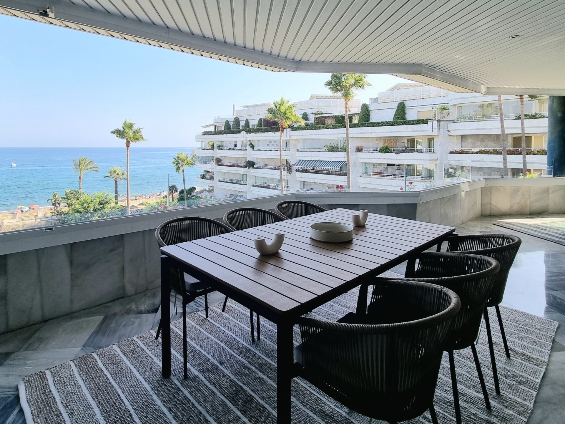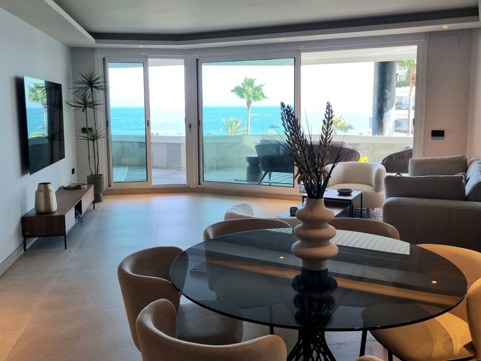 Luxury apartment with three bedrooms and front sea views on Marbella’s Golden Mile.