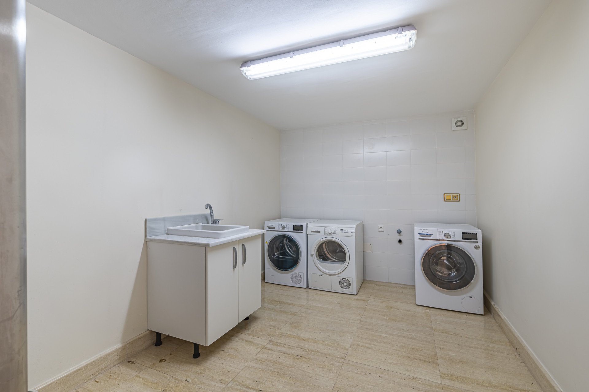 This villa seamlessly integrates modern amenities, including high-speed internet and a well-equipped laundry room for added convenience.