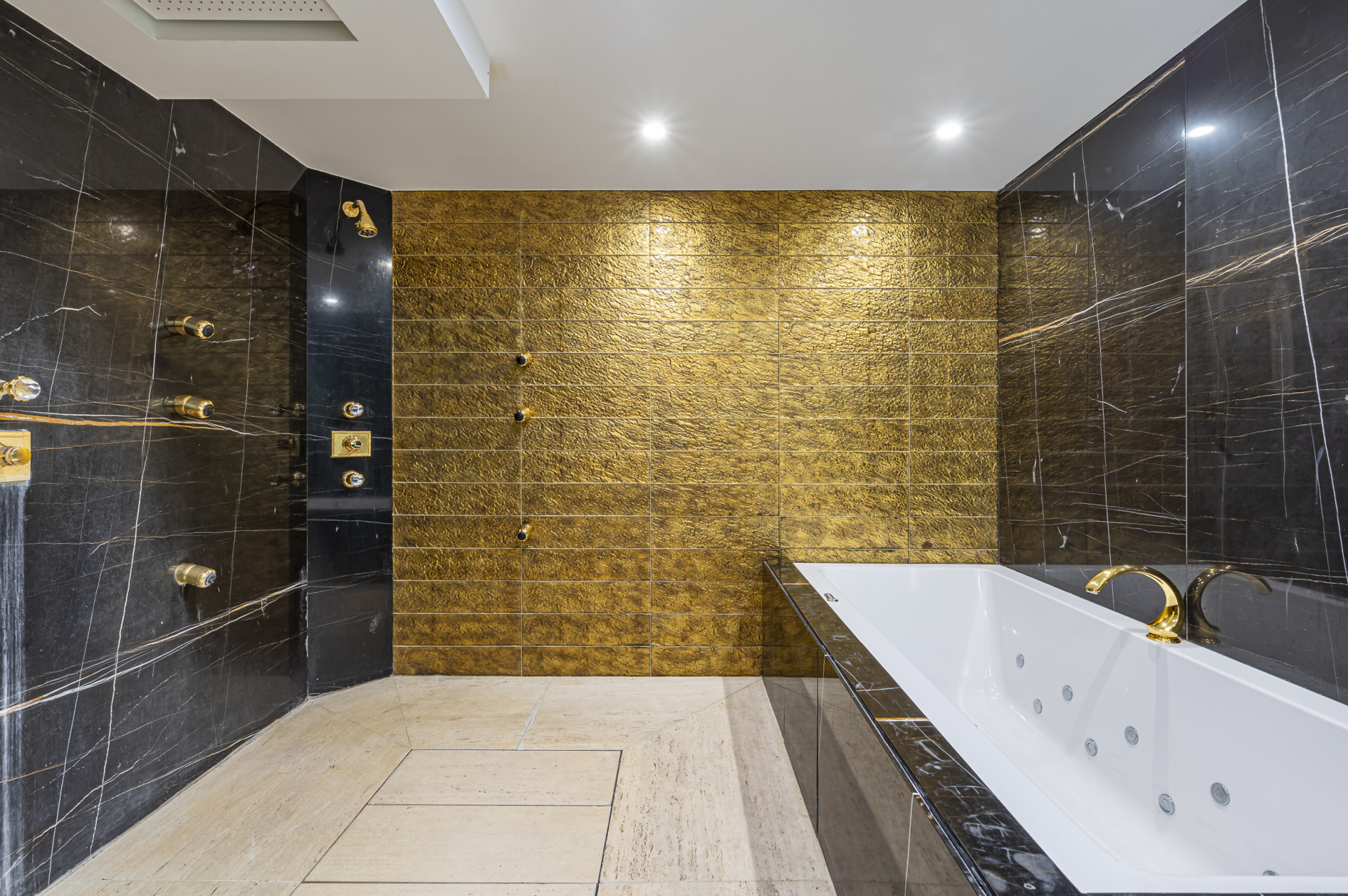 Step outside onto the expansive private terrace, where a heated pool beckons you to relax while enjoying breathtaking views of the sea and lush gardens.