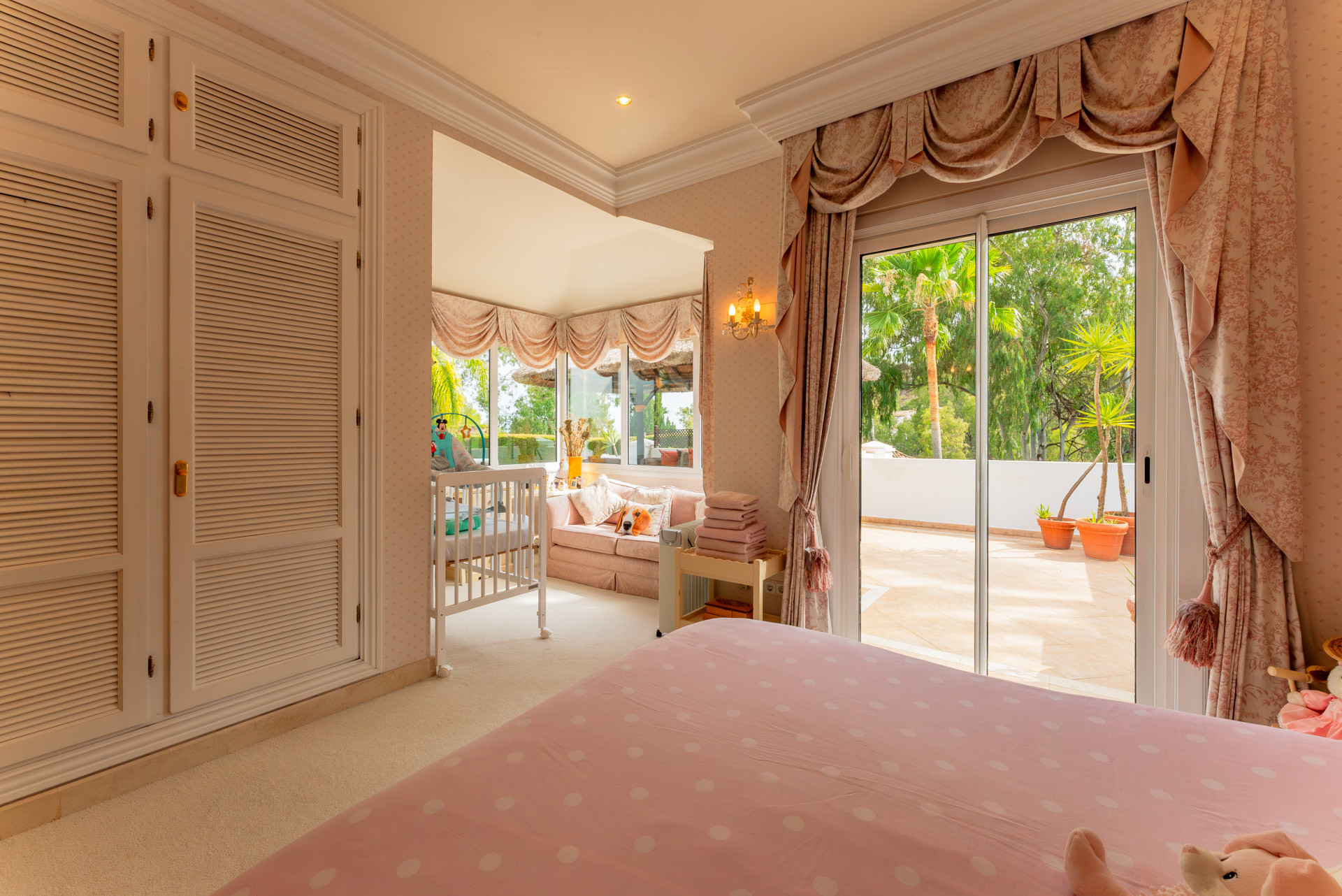 JUST-00423PNestled in the prestigious 24-hour gated community of El Herrojo Alto in Benahavis, this exquisite classic five-bedroom villa seamlessly blends luxury, comfort, and security in a stunning golf setting near La Quinta.