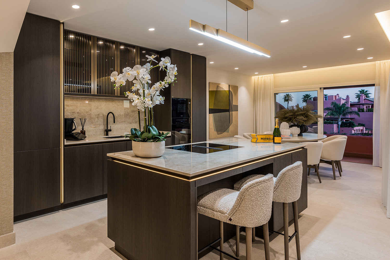 Beautifully renovated, south facing three bedroom penthouse located in prestigious beachfront community Bahia del Velerin, Estepona.