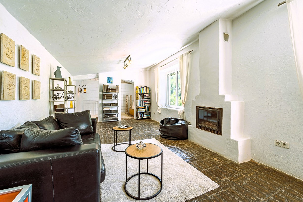 The rustic plot includes 5,000 m² of irrigated land, planted with a carefully selected variety of fruit trees, olive trees and almond trees, creating a landscape of remarkable natural beauty. The gentle sound of the nearby stream accompanies daily life, enhancing the sense of peace and disconnection. The estate also features several terraces for leisure and relaxation, a traditional wood-fired oven, barbecue area, and a 50 m² swimming pool, surrounded by an extensive garden where various works of art are harmoniously integrated into the natural surroundings.