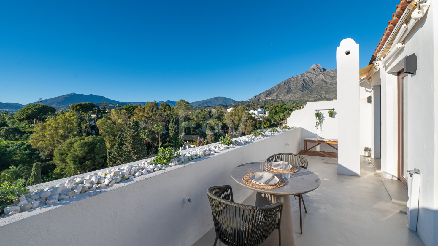 759-00392PThis stunning duplex penthouse has been fully renovated to the highest standards and offers brand new, key ready interiors. It is located in Las Lomas del Marbella Club, one of the most prestigious areas in the heart of the Golden Mile of Marbella. From the spacious South-West facing terrace, you can enjoy lovely open views to the sea, the green nature and the mountains and you have sun from noon till sunset.