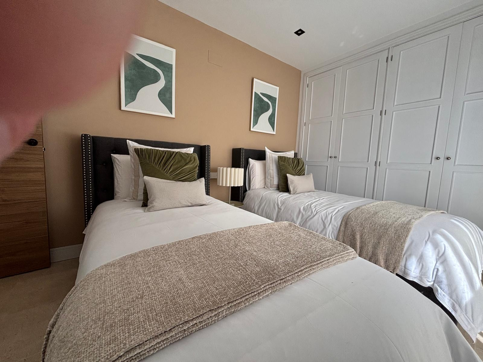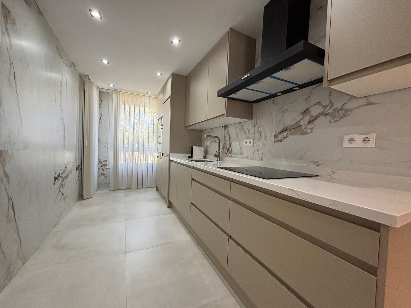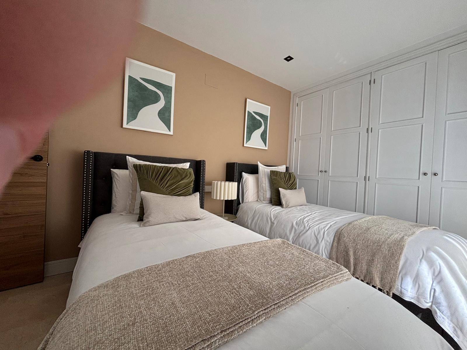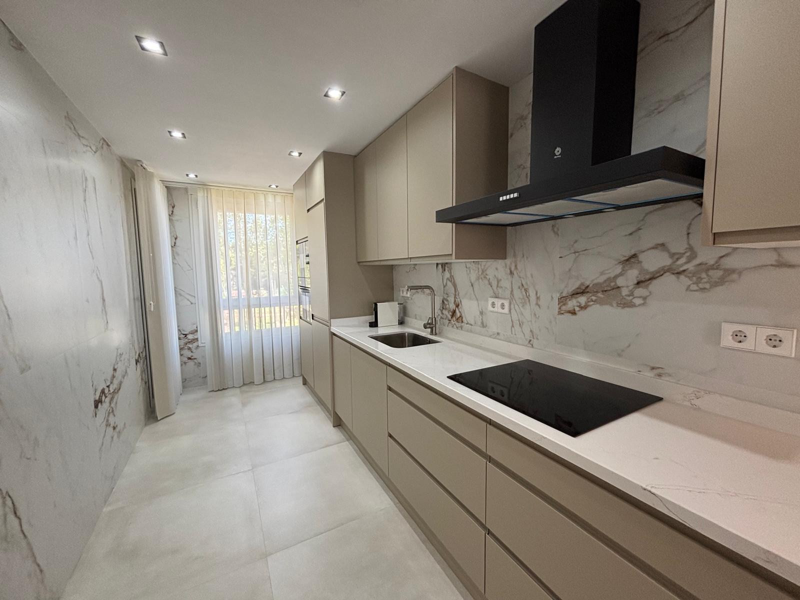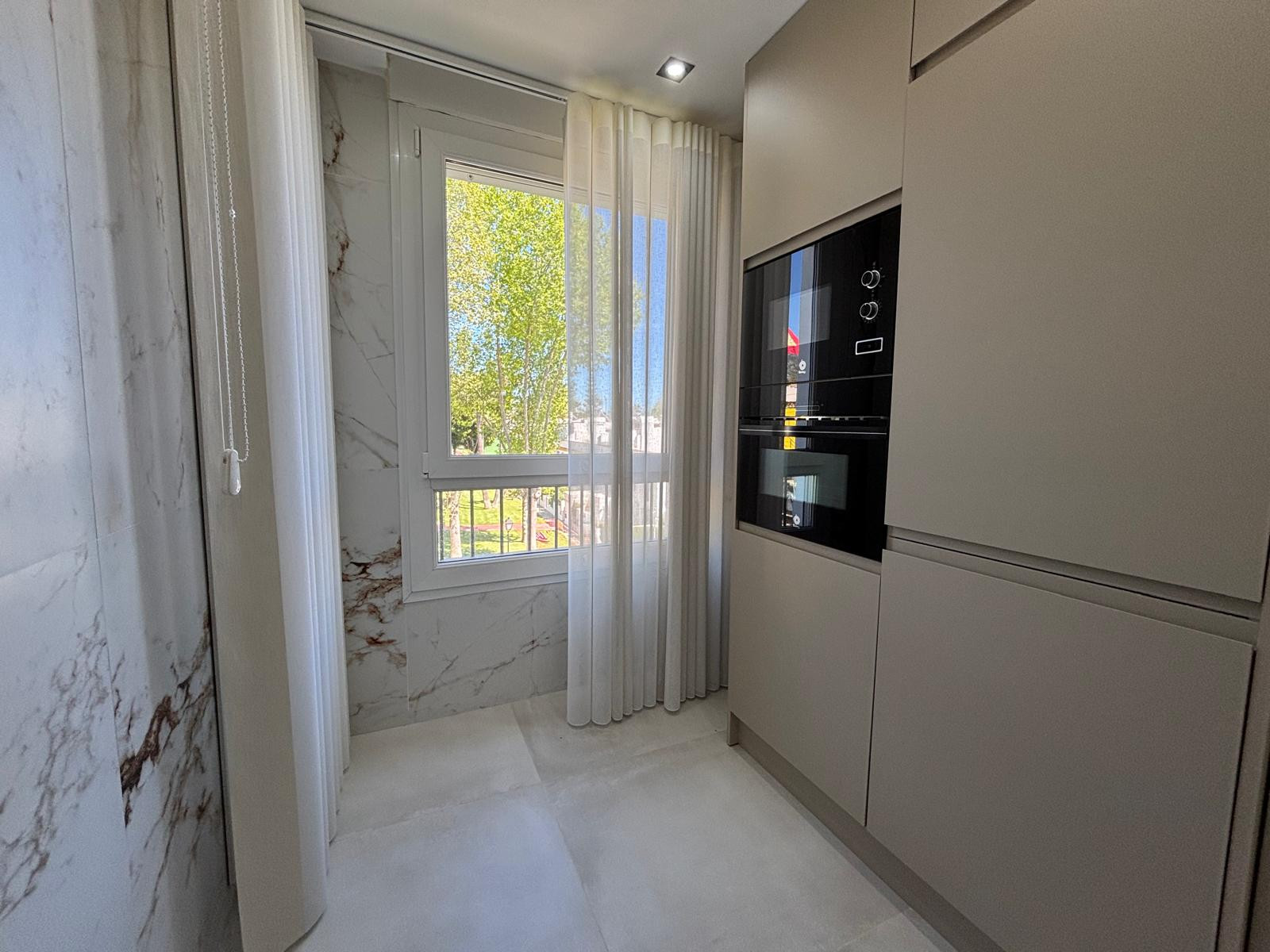 Recently renovated and tastefully furnished, the apartment stands out for its contemporary design while maintaining warmth and comfort. The fully equipped kitchen, complete with a separate laundry area, blends functionality with style. The bright living and dining area opens onto a glazed terrace with glass curtains, offering pleasant views of the tropical gardens, swimming pool, and partial sea views—an ideal setting to relax and enjoy Marbella’s year-round climate.