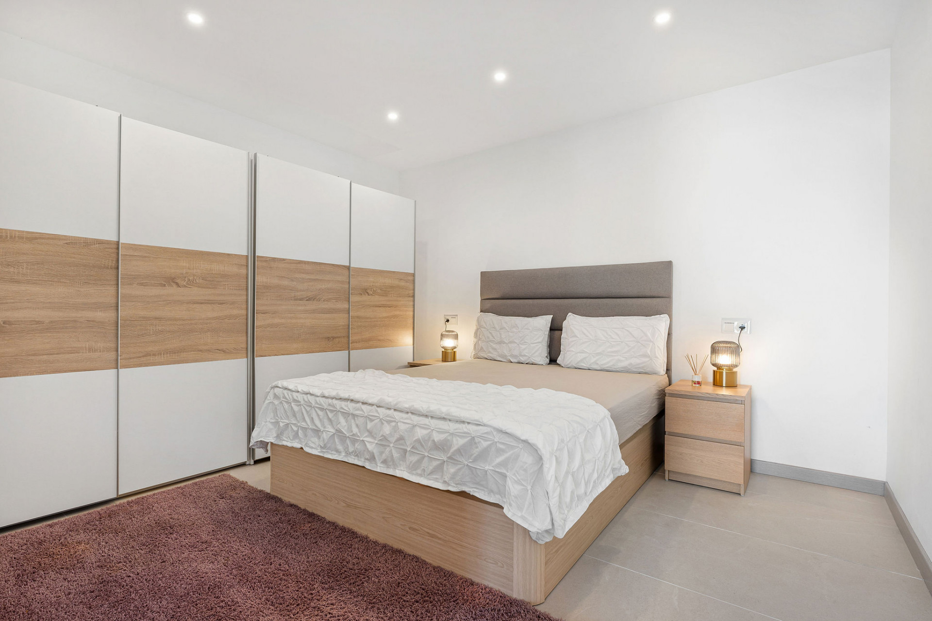 Moving through the villa, the design reveals a masterful balance of luxury and practicality. The first floor houses the master suite, a sanctuary of peace and tranquility, with its own private terrace from which one can enjoy uninterrupted views of the golf course at sunset. Two additional en-suite bedrooms on this level offer ample space and privacy for family or guests, each thoughtfully designed with both comfort and style in mind.