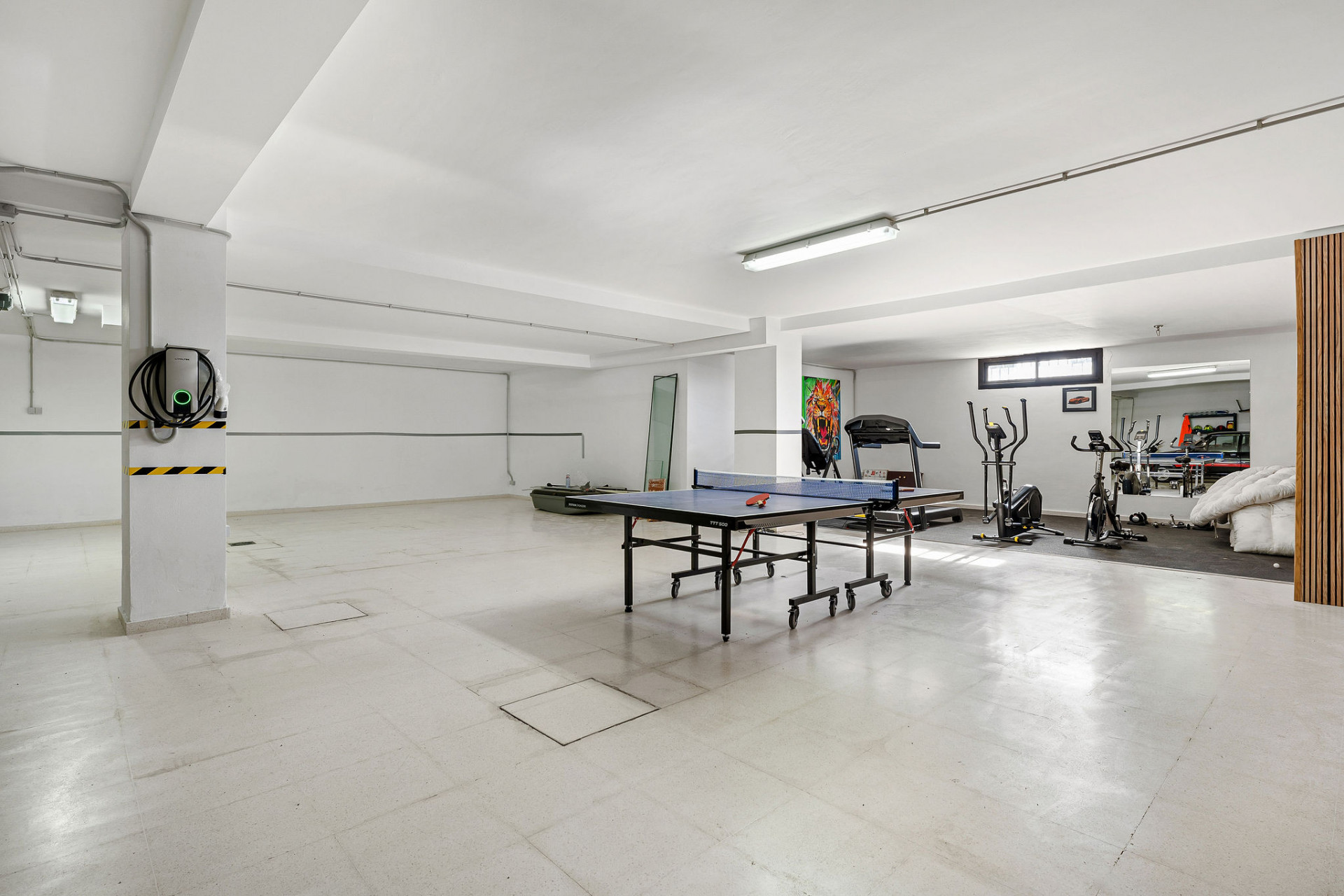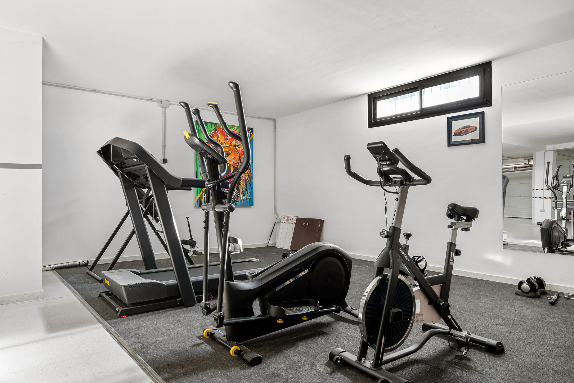 The basement is a revelation in itself. Expansive and versatile, it includes a utility room, a guest apartment with a private entrance – perfect for visiting friends or long-term stays – and an extensive garage that has been partially converted into a gym. For those with a penchant for film, a separate room has been cleverly designated as a home cinema, promising an immersive cinematic experience in the comfort of one’s own home.