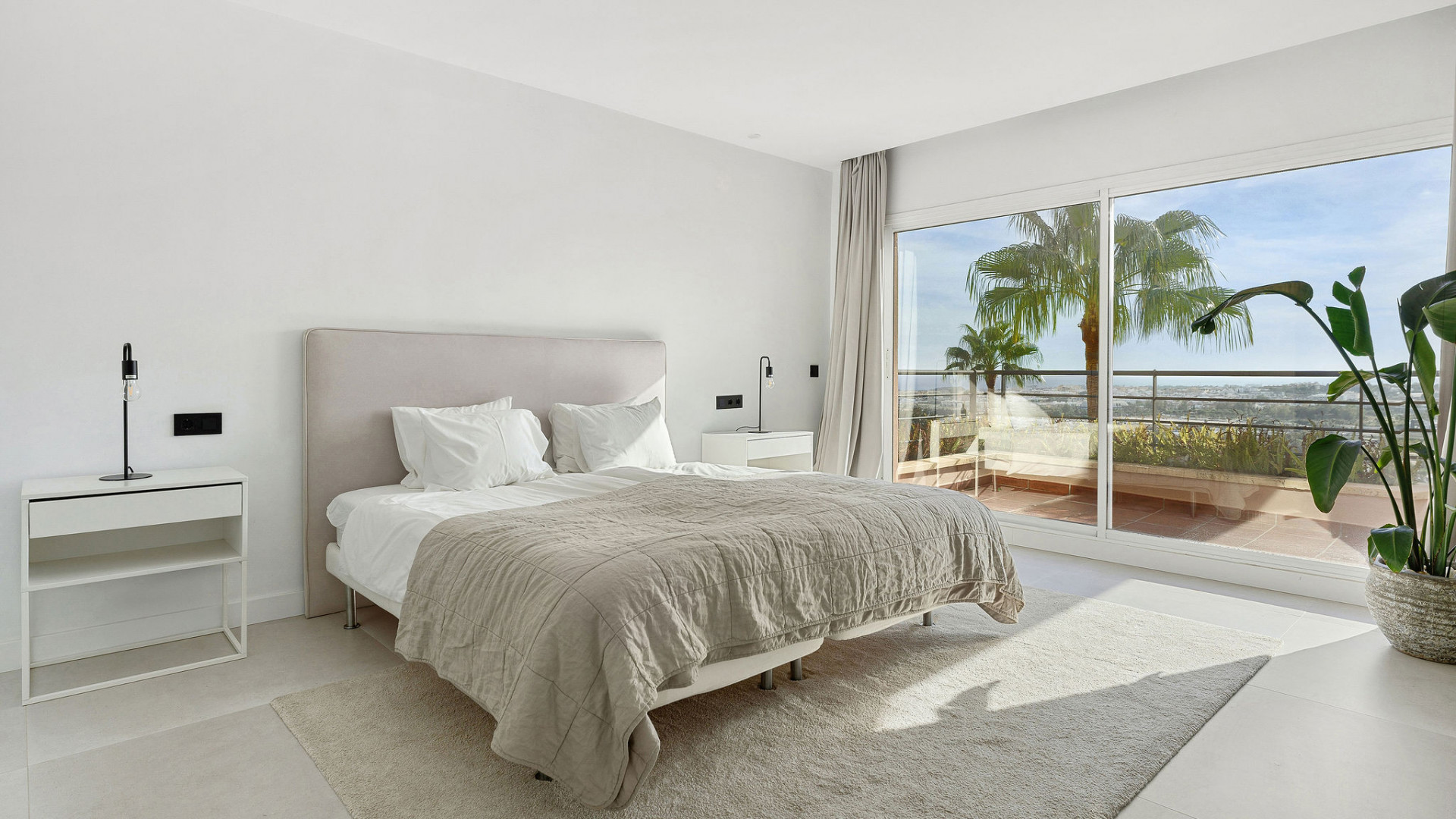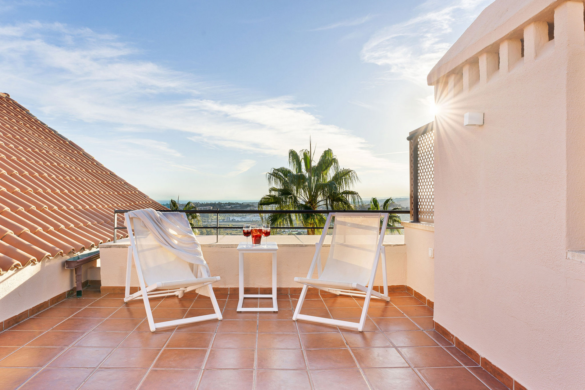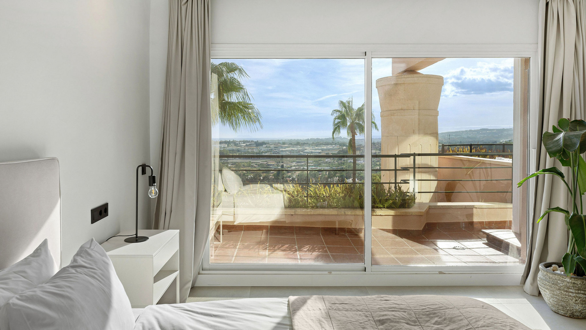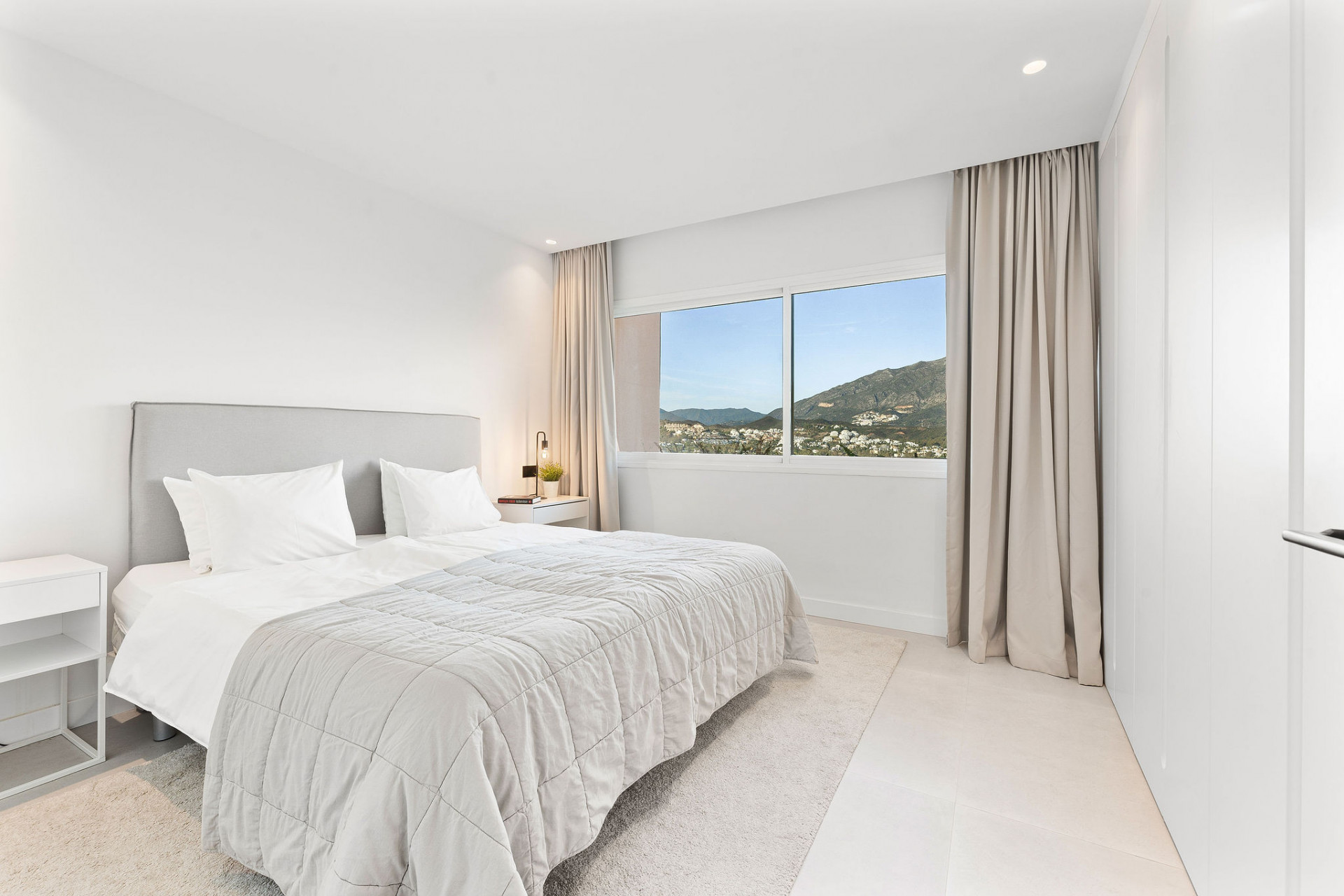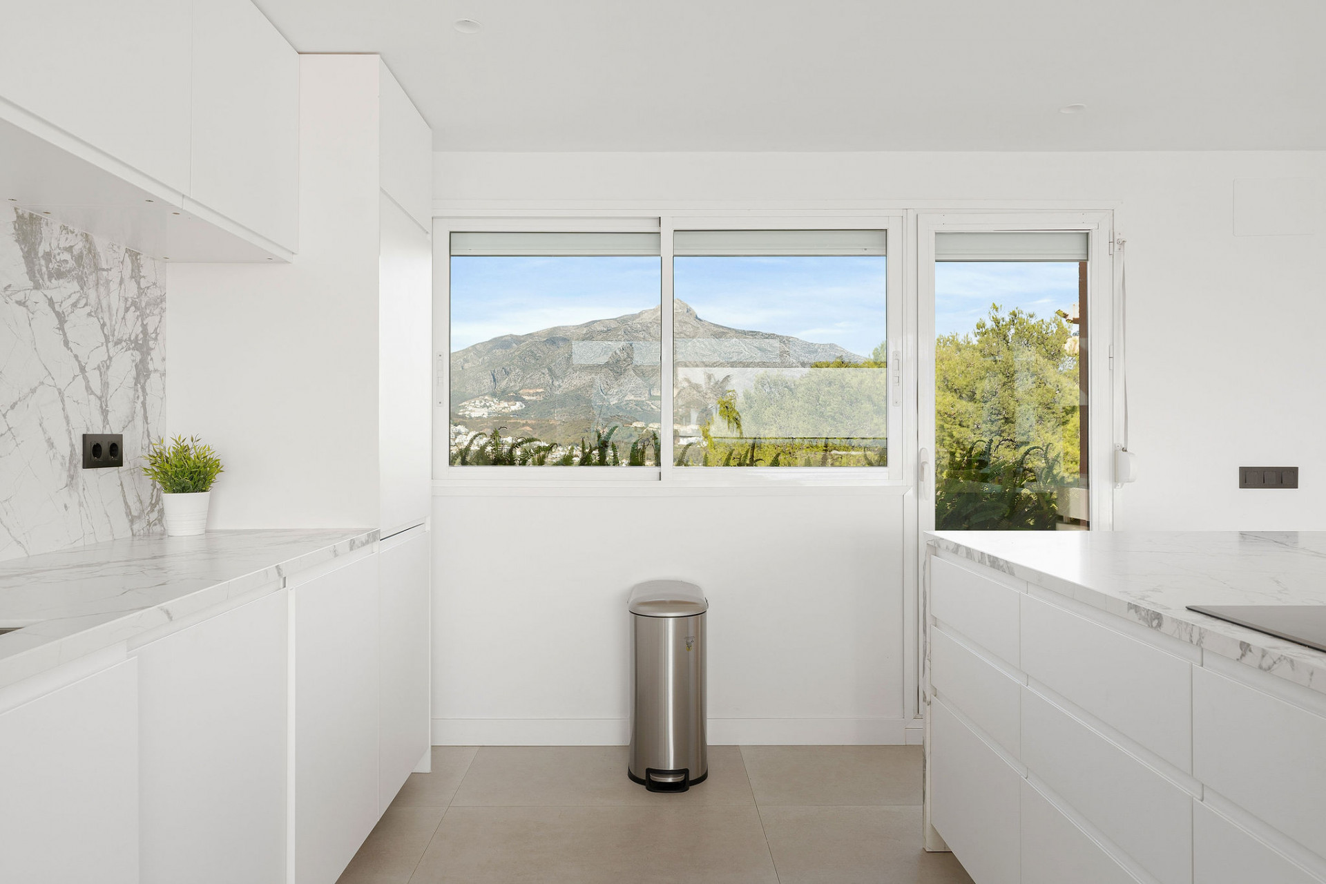 With three spacious bedrooms and two modern bathrooms, this elegant residence offers breathtaking 360-degree panoramic views of the Mediterranean Sea, La Concha Mountain, and the celebrated golf courses of Nueva Andalucía.