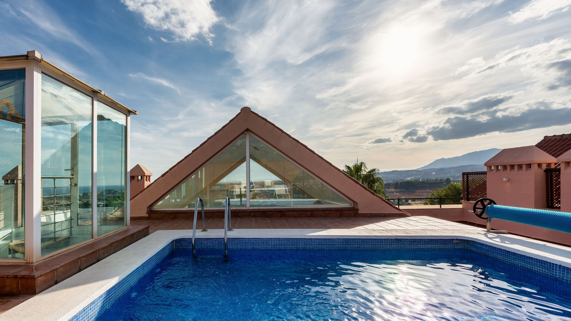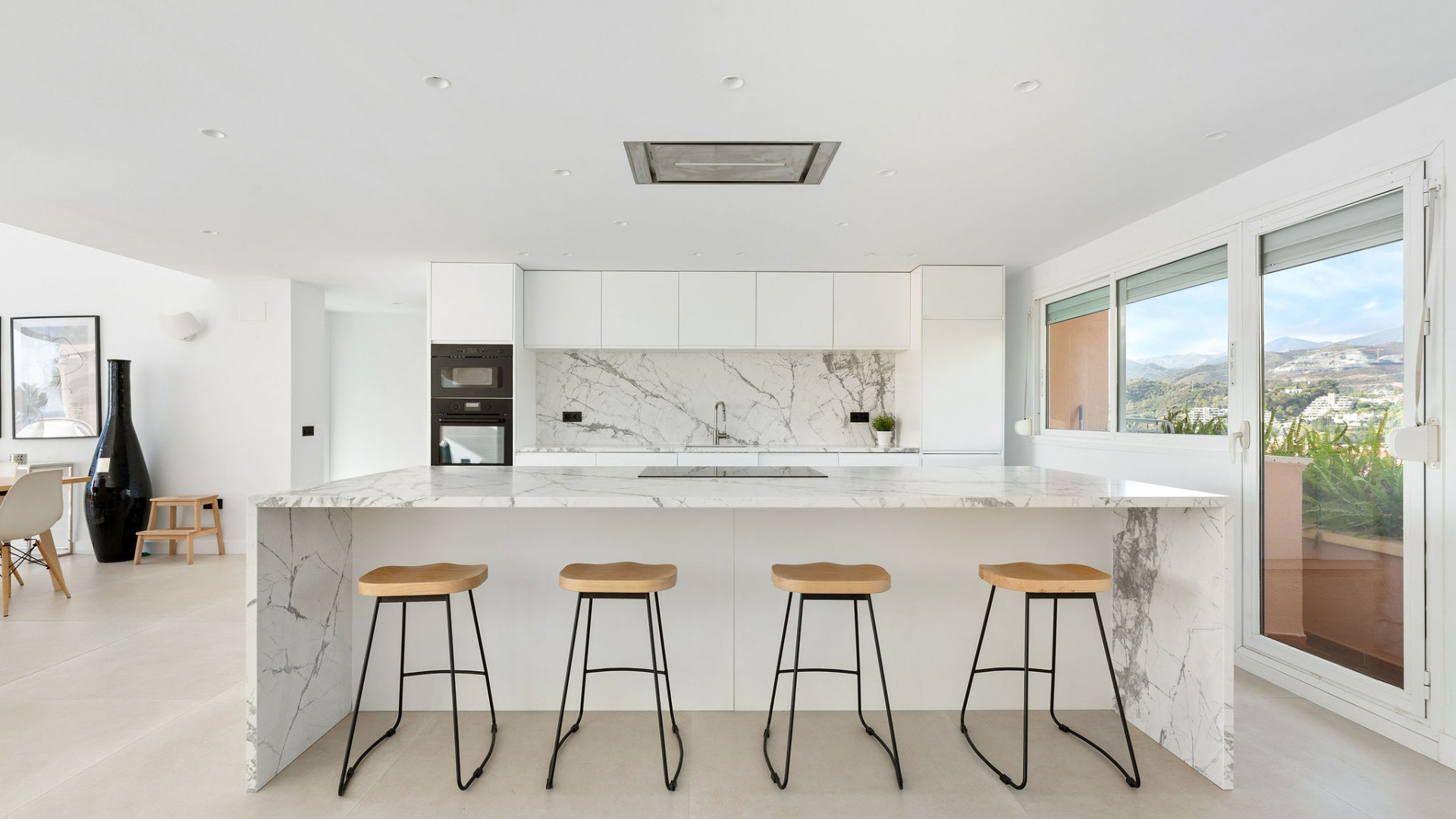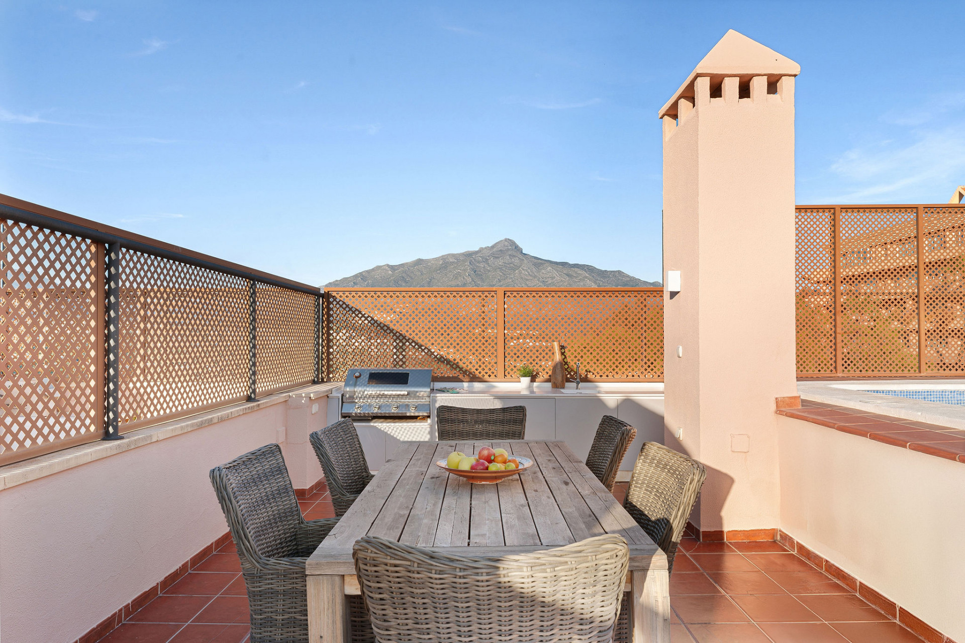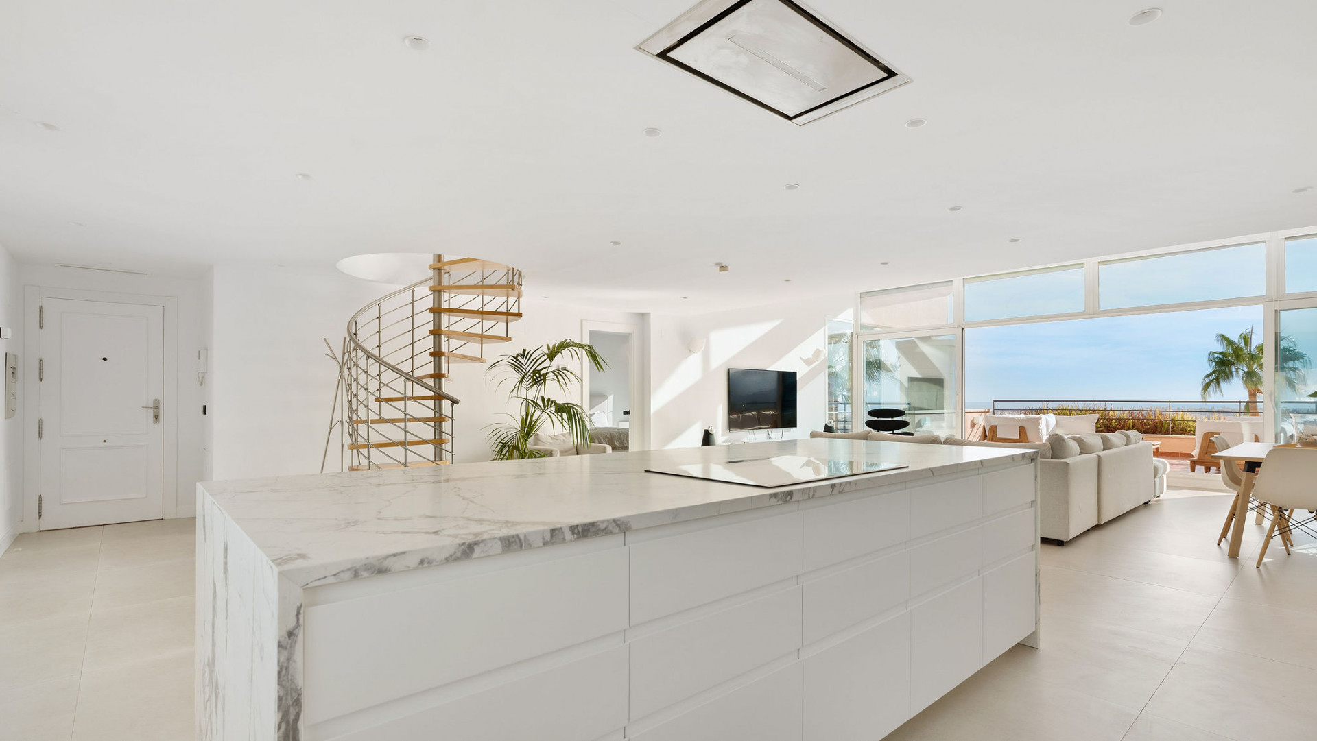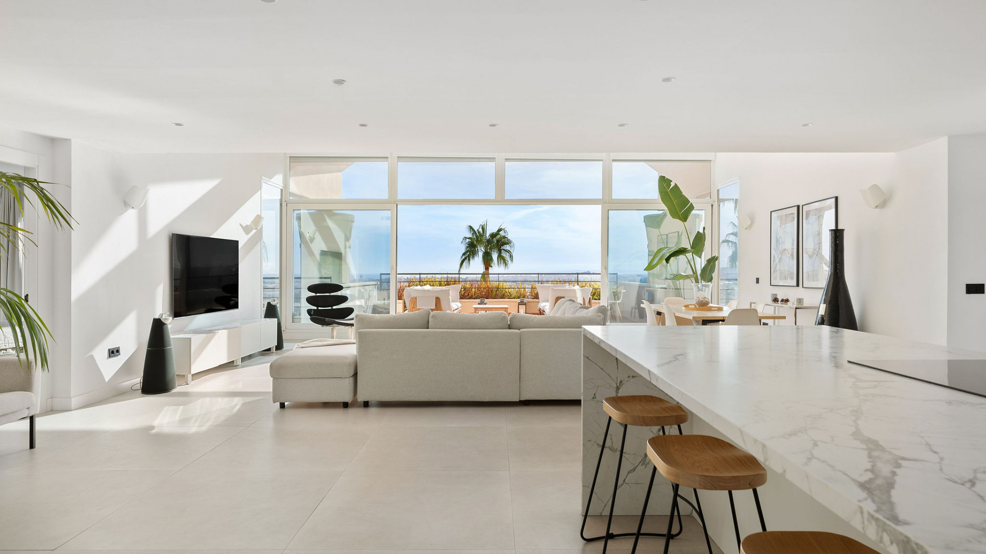 With three spacious bedrooms and two modern bathrooms, this elegant residence offers breathtaking 360-degree panoramic views of the Mediterranean Sea, La Concha Mountain, and the celebrated golf courses of Nueva Andalucía.