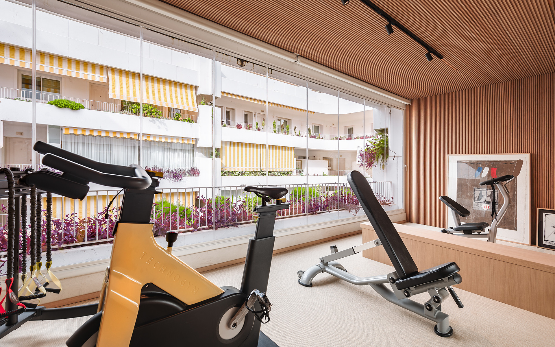 fitted kitchen with oak wood panels; private gym; en-suite master bedroom with a large walk-in closet and a luxurious bathroom; 2 guest