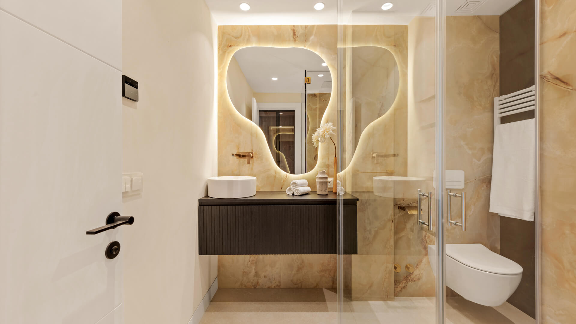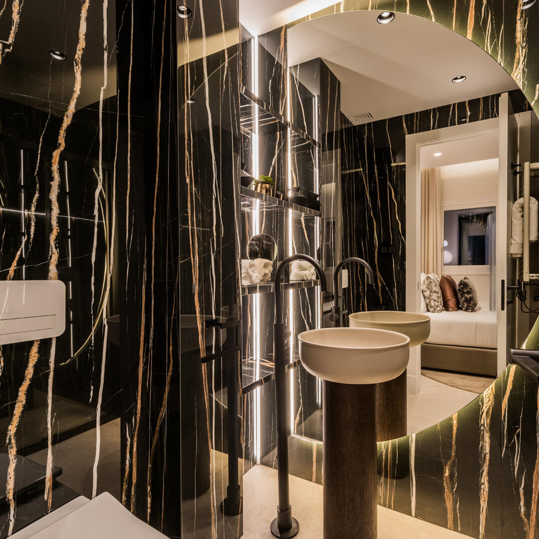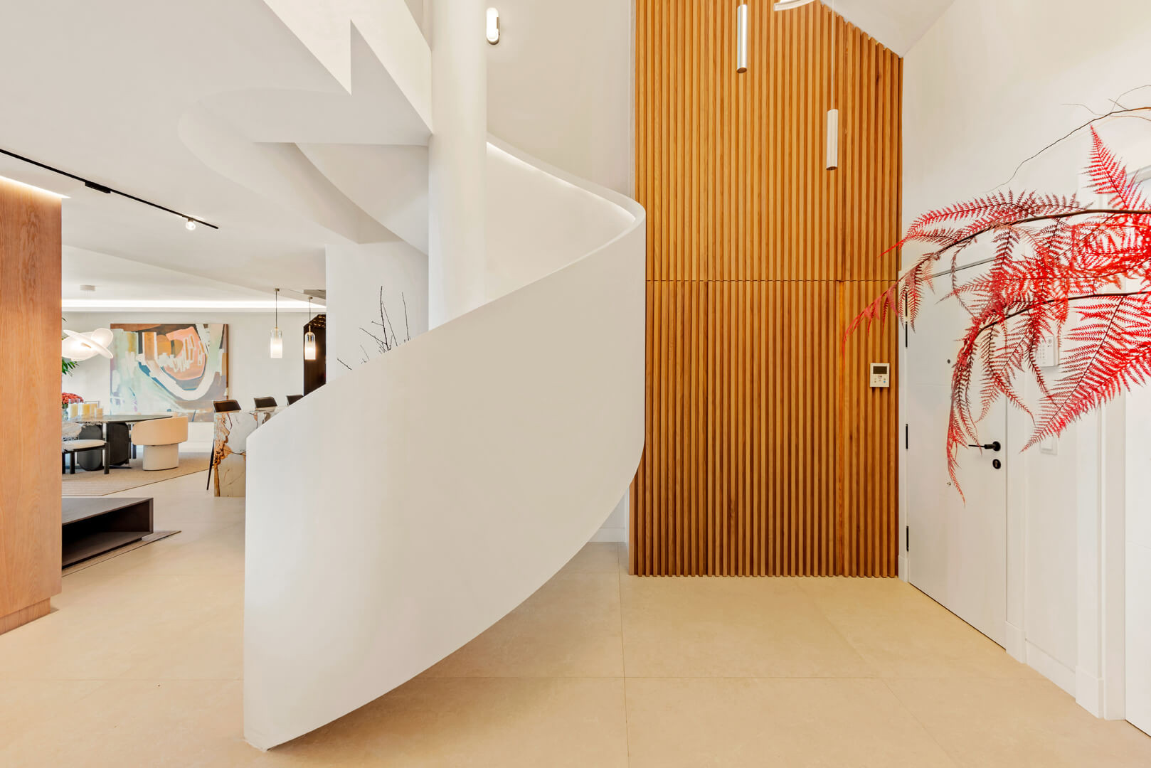 But the delights do not stop at the doorstep. The penthouse offers the rare privilege of panoramic sea views, not just from one level, but from two, creating an ever-changing vista of blue horizons and glistening waters. The terraces provide an ideal vantage point, a private retreat to soak in the Mediterranean climate, whether for morning coffees or sunset cocktails. Whether entertaining or enjoying a quiet moment of respite, these outdoor spaces become an extension of the home, as spectacular as the interior.