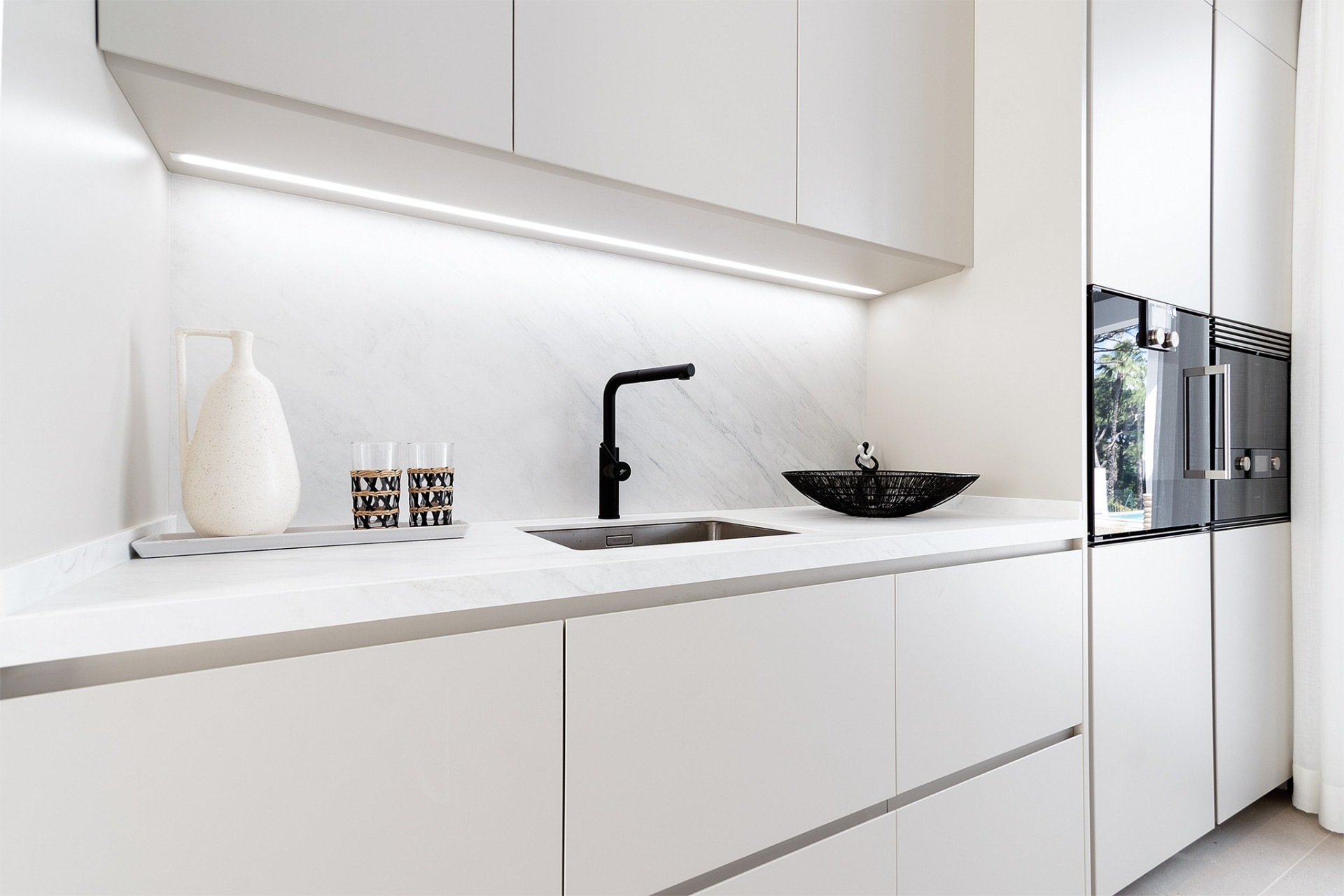 With stunning views of the Mediterranean Sea, the roof terrace is a perfect place to relax, disconnect and enjoy the sun. The villa is newly built and is facing south to make the most of the natural light in the open spaces. It offers an open plan design that integrates the exterior with the interior.