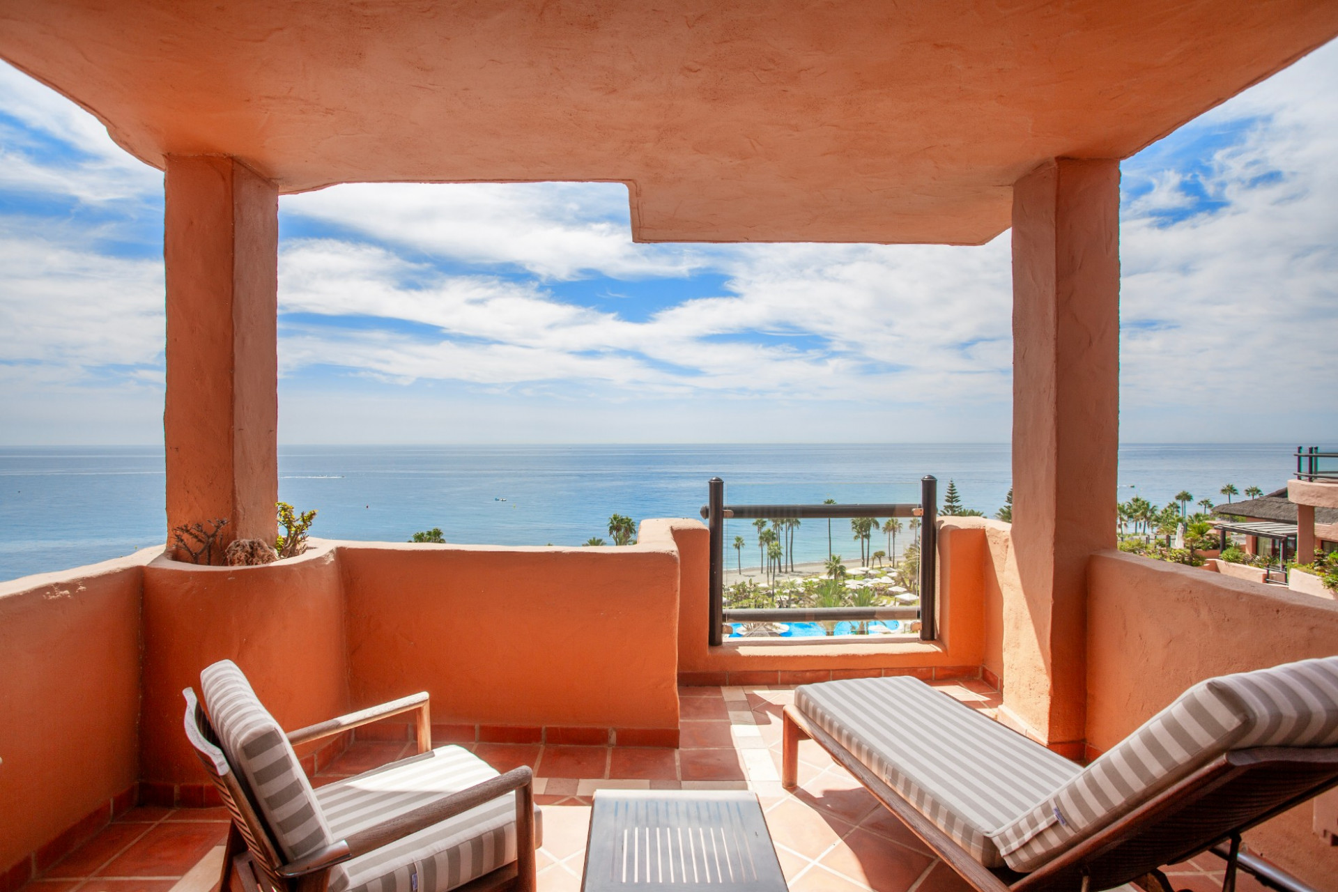 Here, you can bask in uninterrupted views of the sea from various seating areas, perfect for alfresco dining or lounging in the sun.