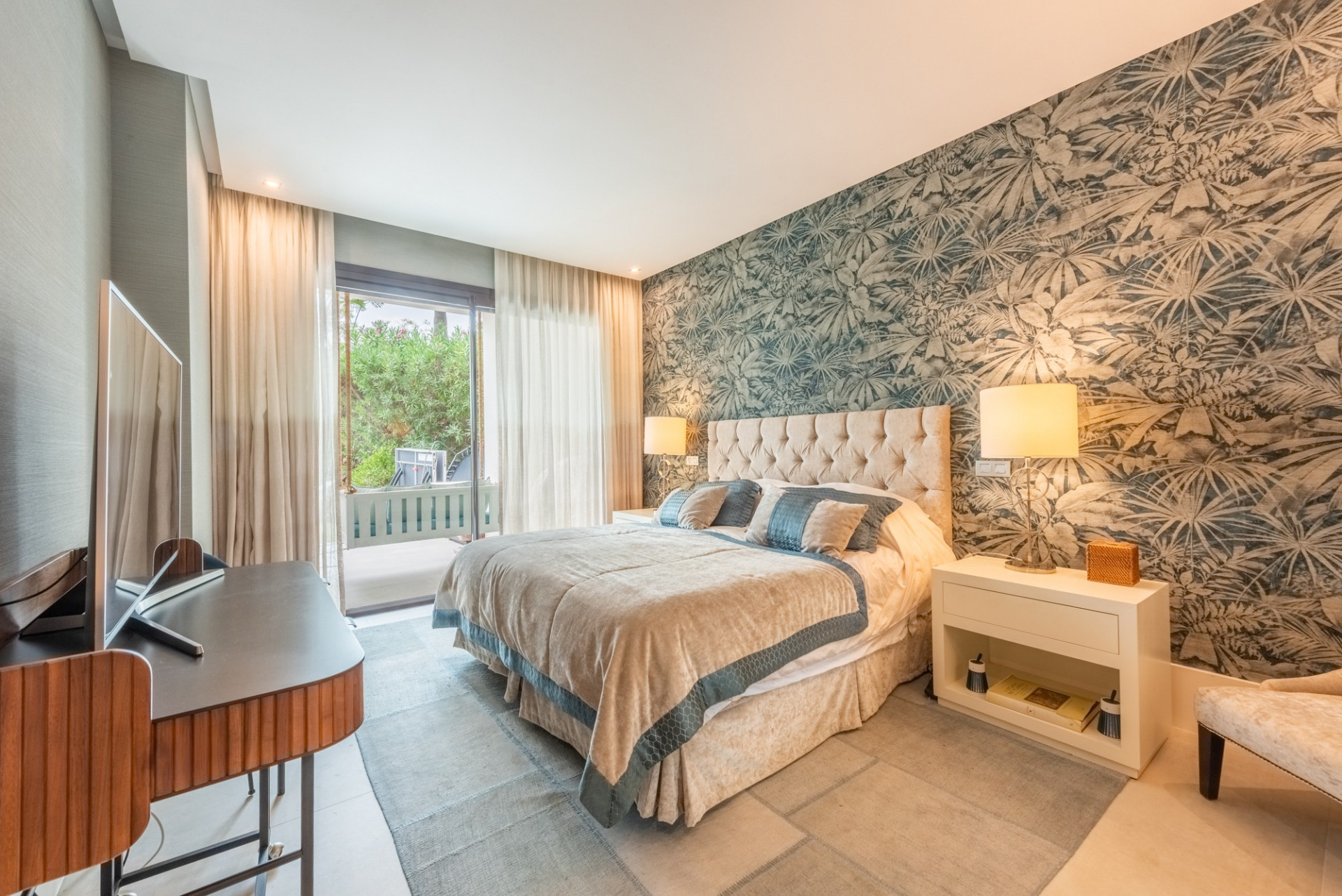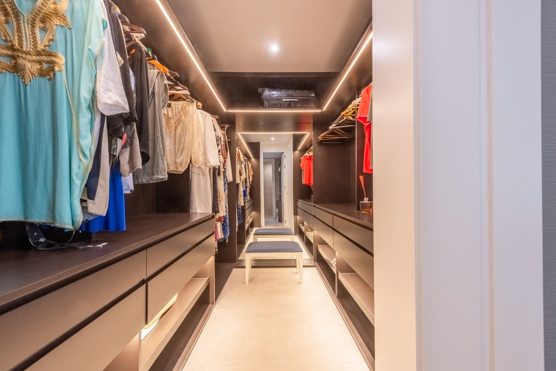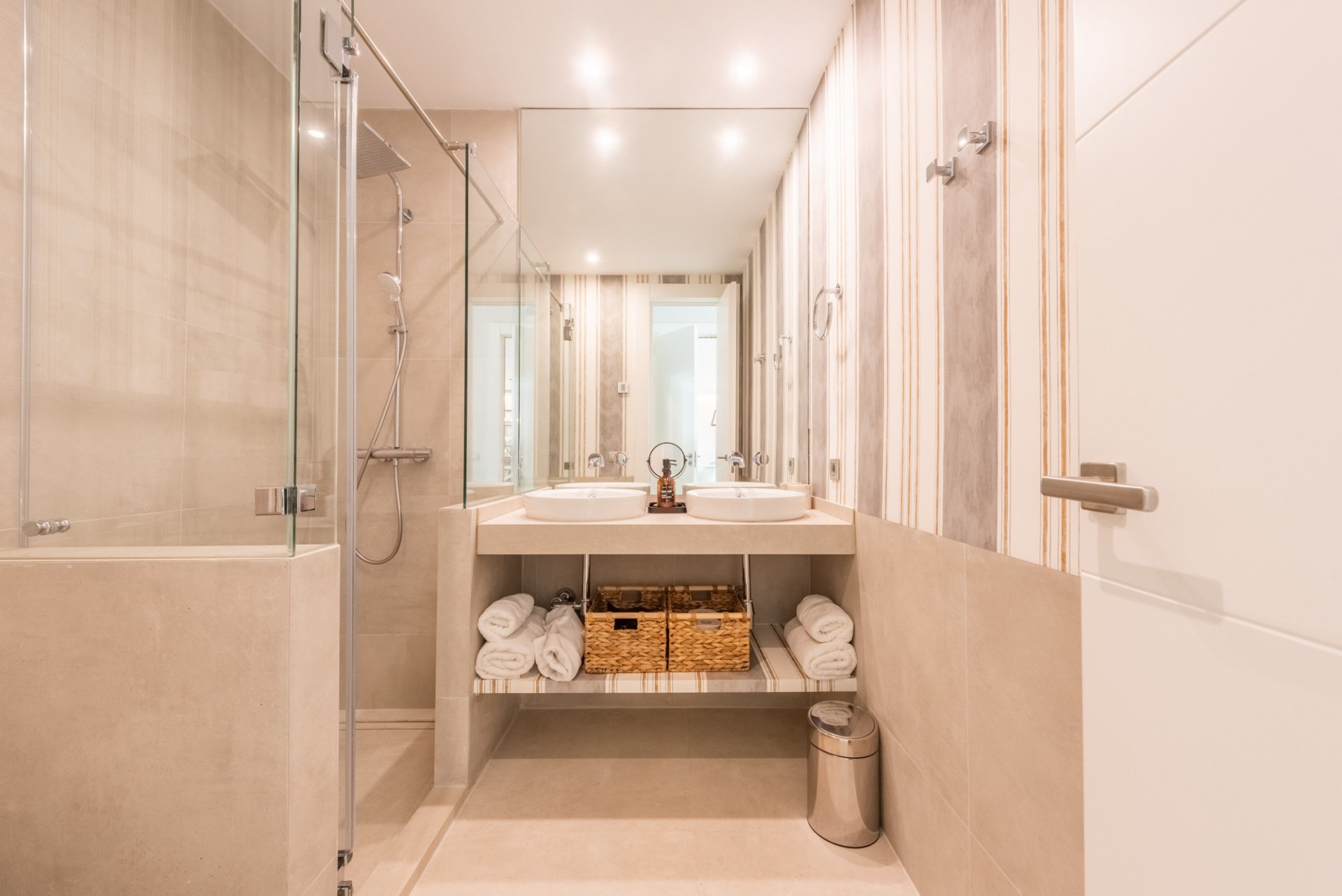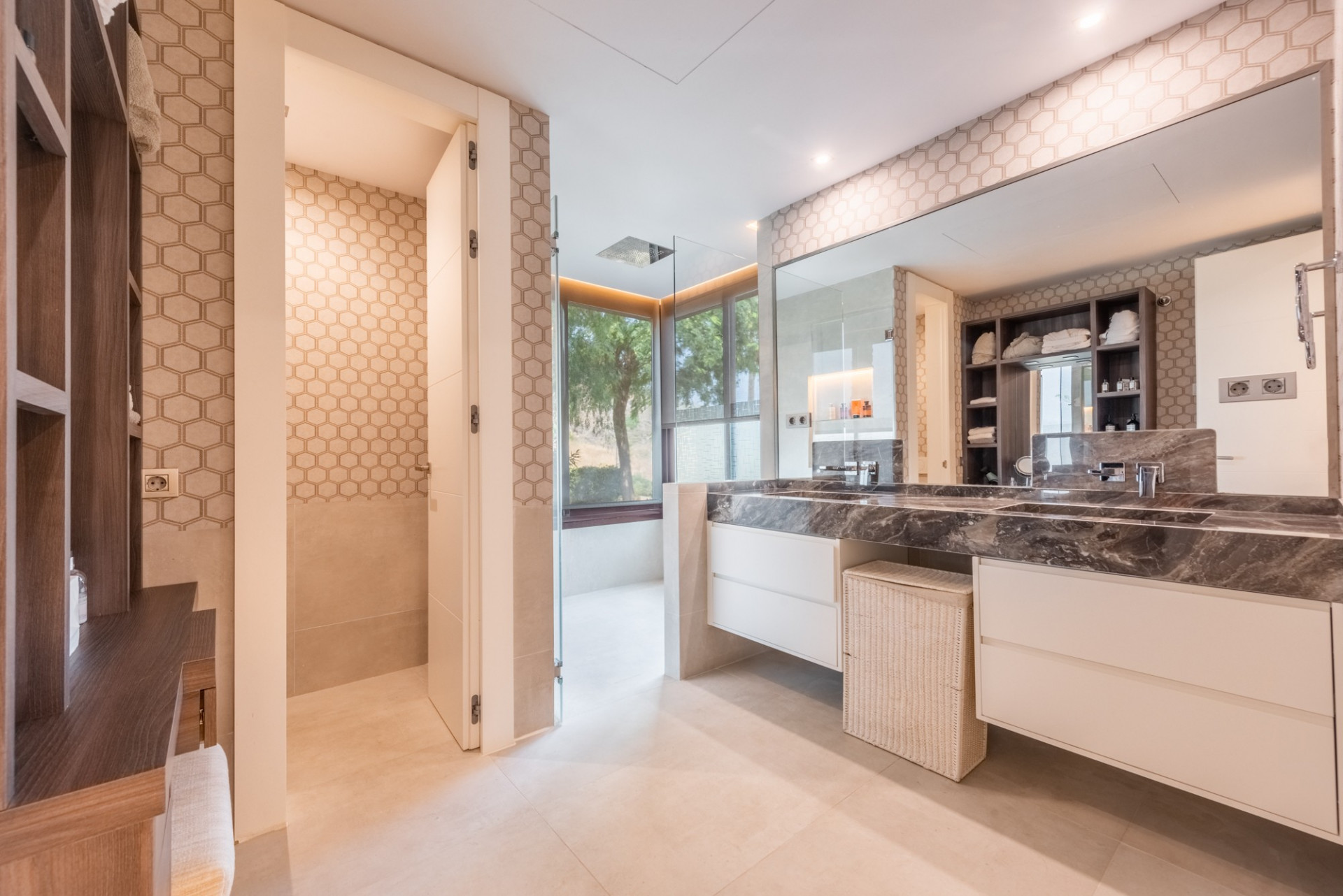 This stunning apartment boasts 5 generously sized bedrooms and 5 luxurious bathrooms. The master suite is a true retreat, featuring an elegant en-suite bathroom with a double vanity, a spacious dressing area, and direct access to the shared south-facing terrace.