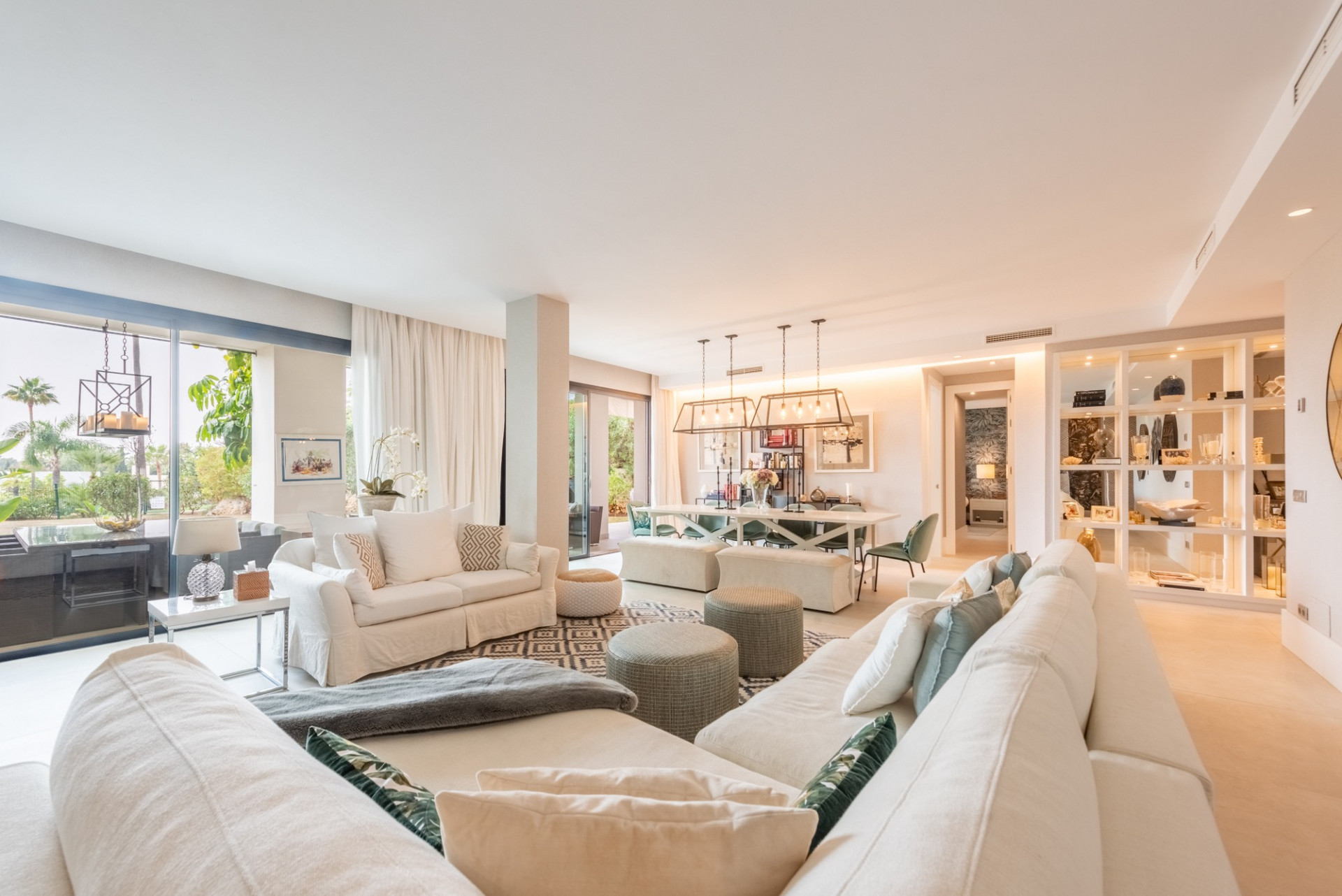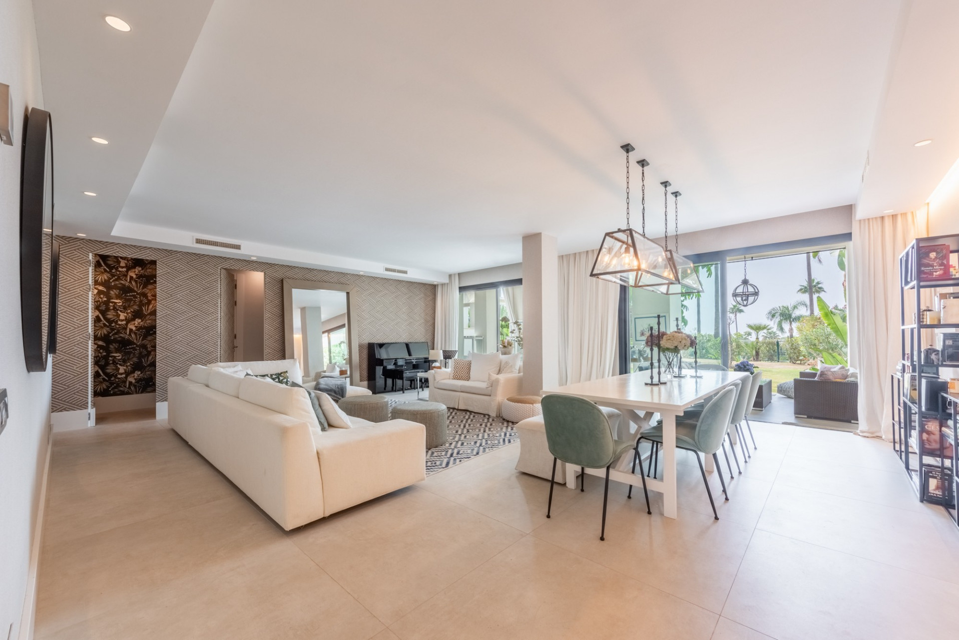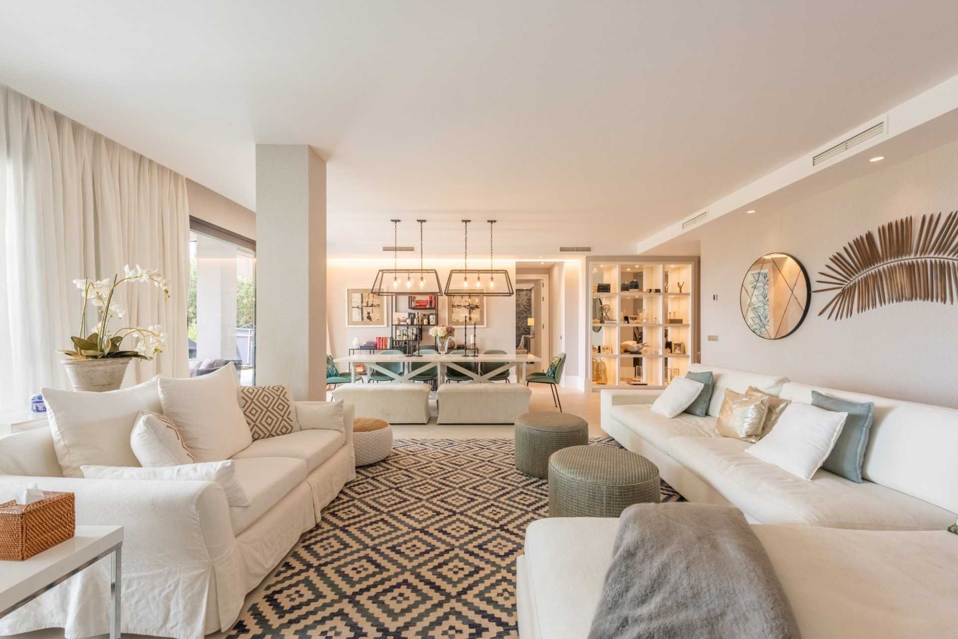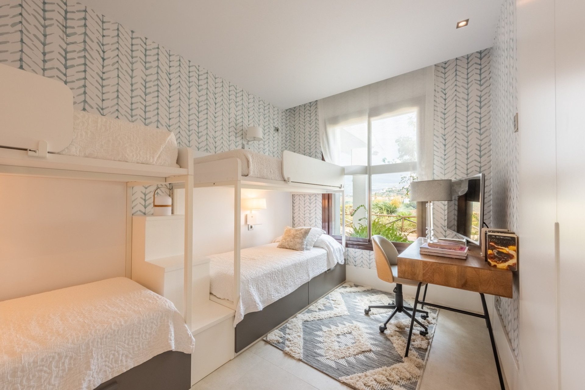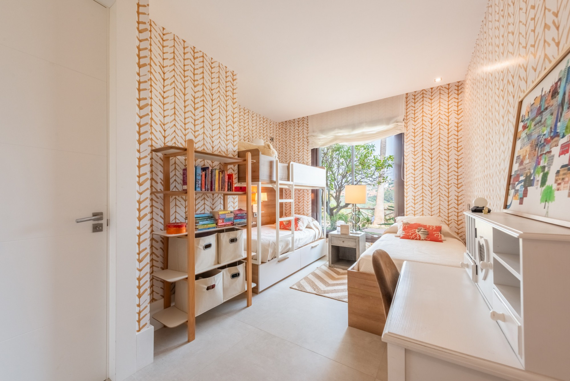 This stunning apartment boasts 5 generously sized bedrooms and 5 luxurious bathrooms. The master suite is a true retreat, featuring an elegant en-suite bathroom with a double vanity, a spacious dressing area, and direct access to the shared south-facing terrace.