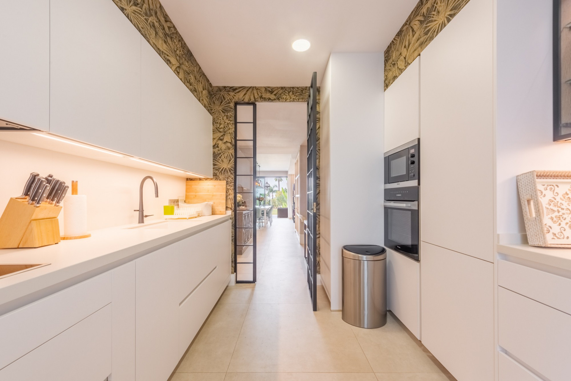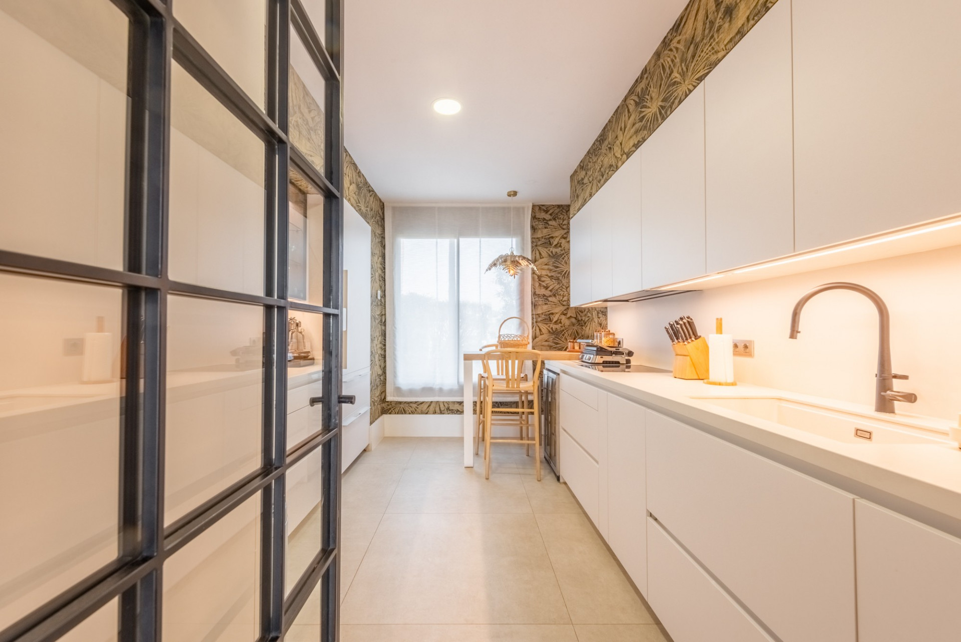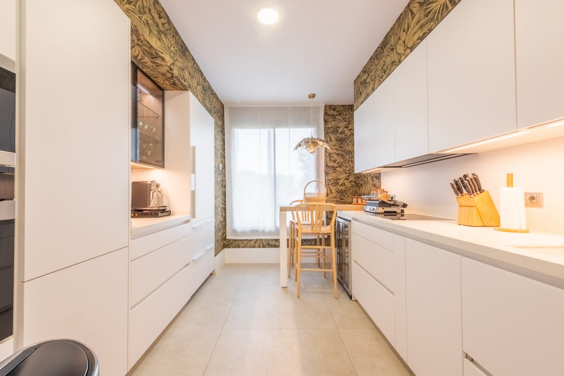 As you step inside, you’re greeted by a welcoming entrance hall that leads into a bright and spacious living and dining area. The open-plan living room extends onto a south-facing terrace and a large private garden, perfect for enjoying the region’s outdoor lifestyle. The modern kitchen is fully equipped with high-end appliances and includes a cozy breakfast nook, ideal for casual dining.