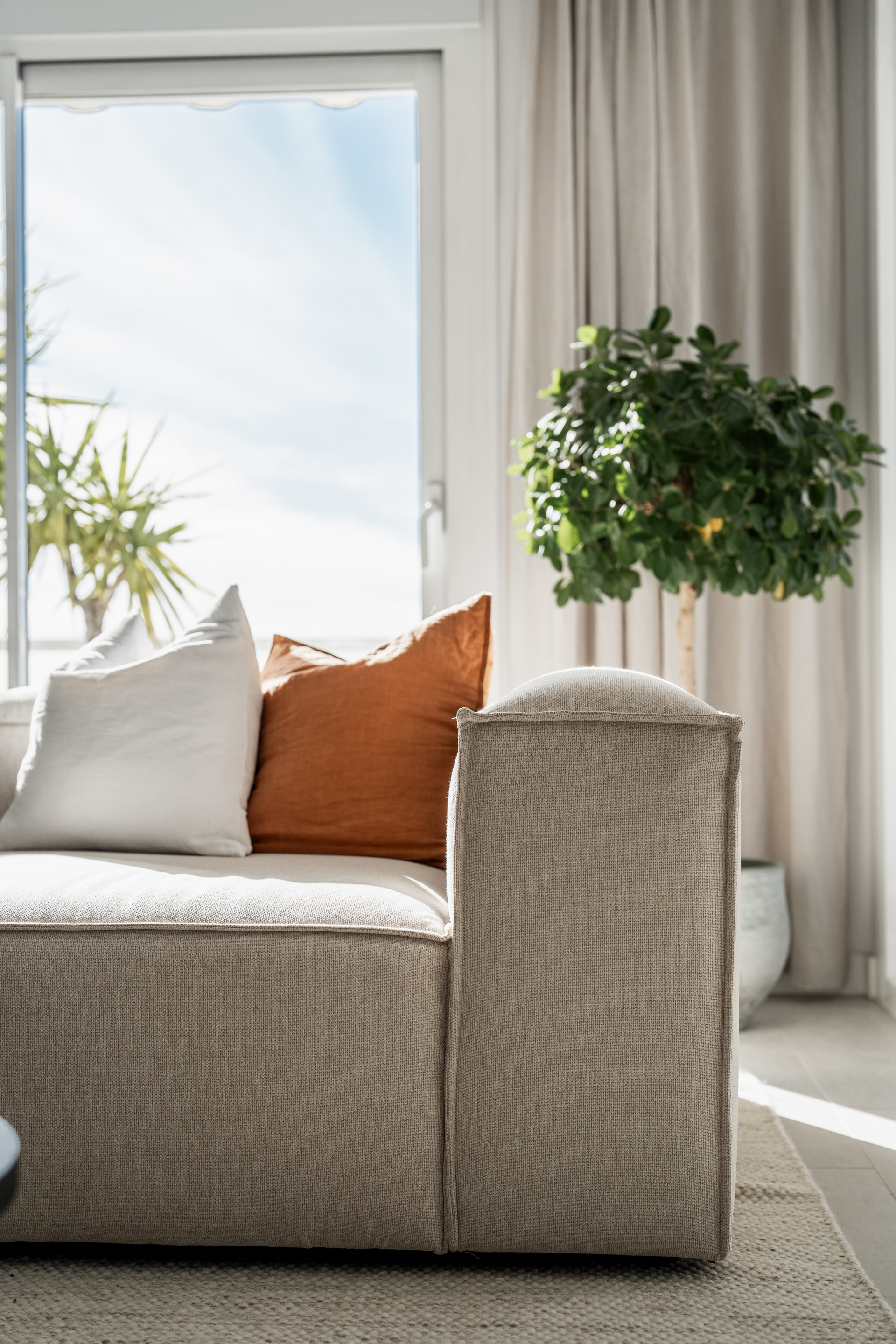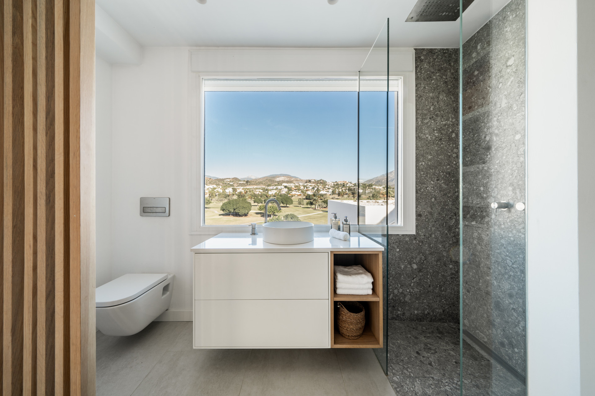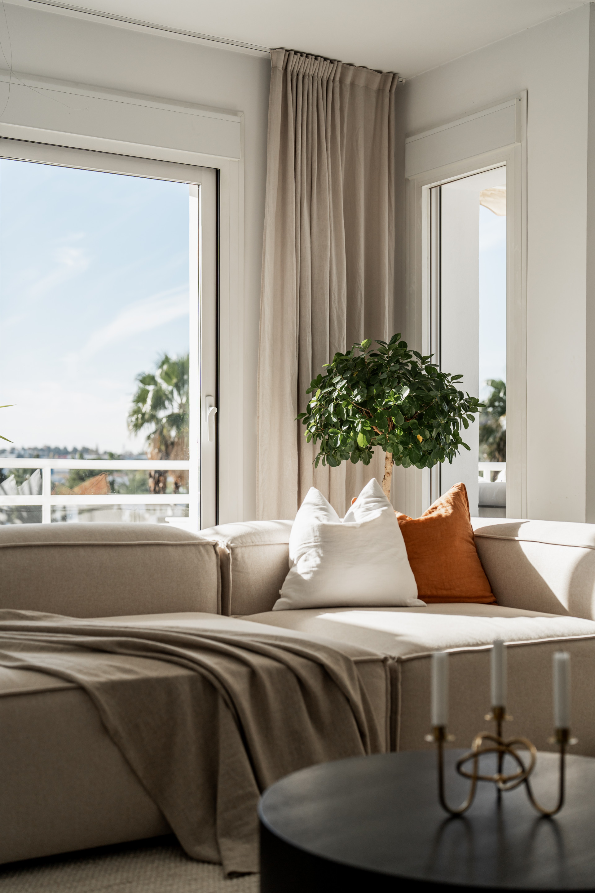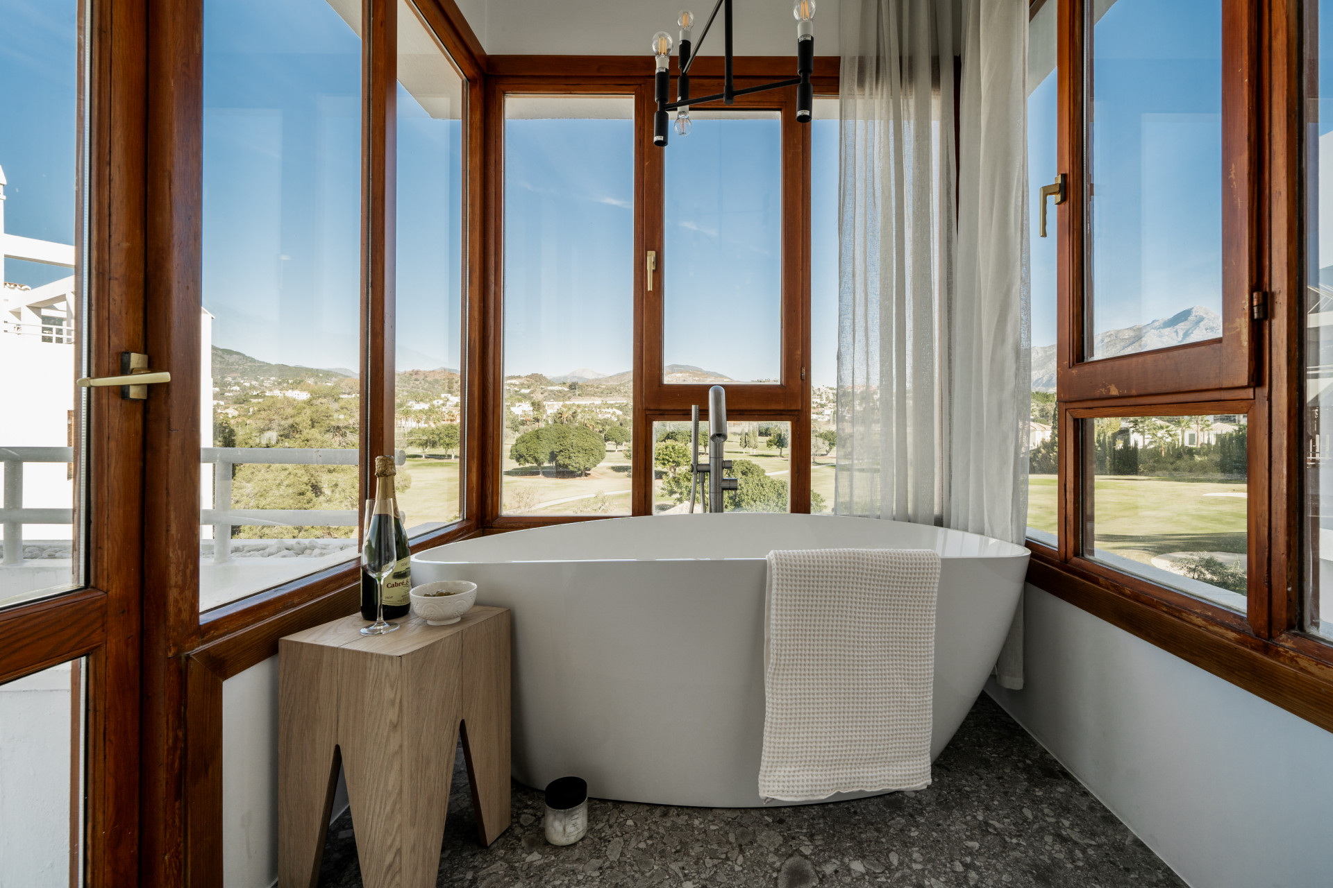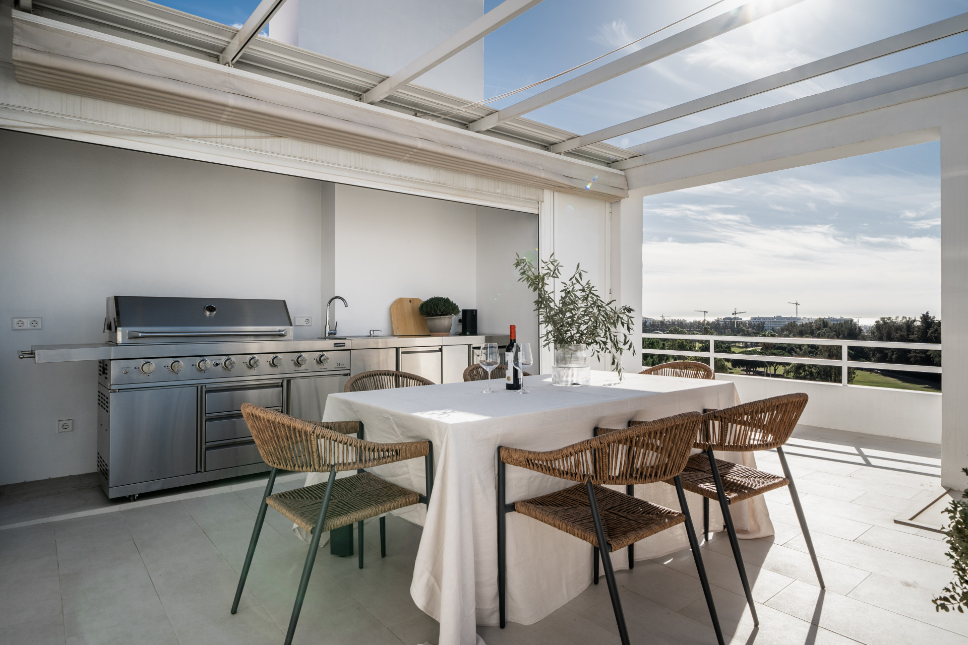You have direct access out to the terrace with a nice coffee table, perfect to enjoy your breakfast and the beautiful views over the Los Naranjos Golf Club and the sea.