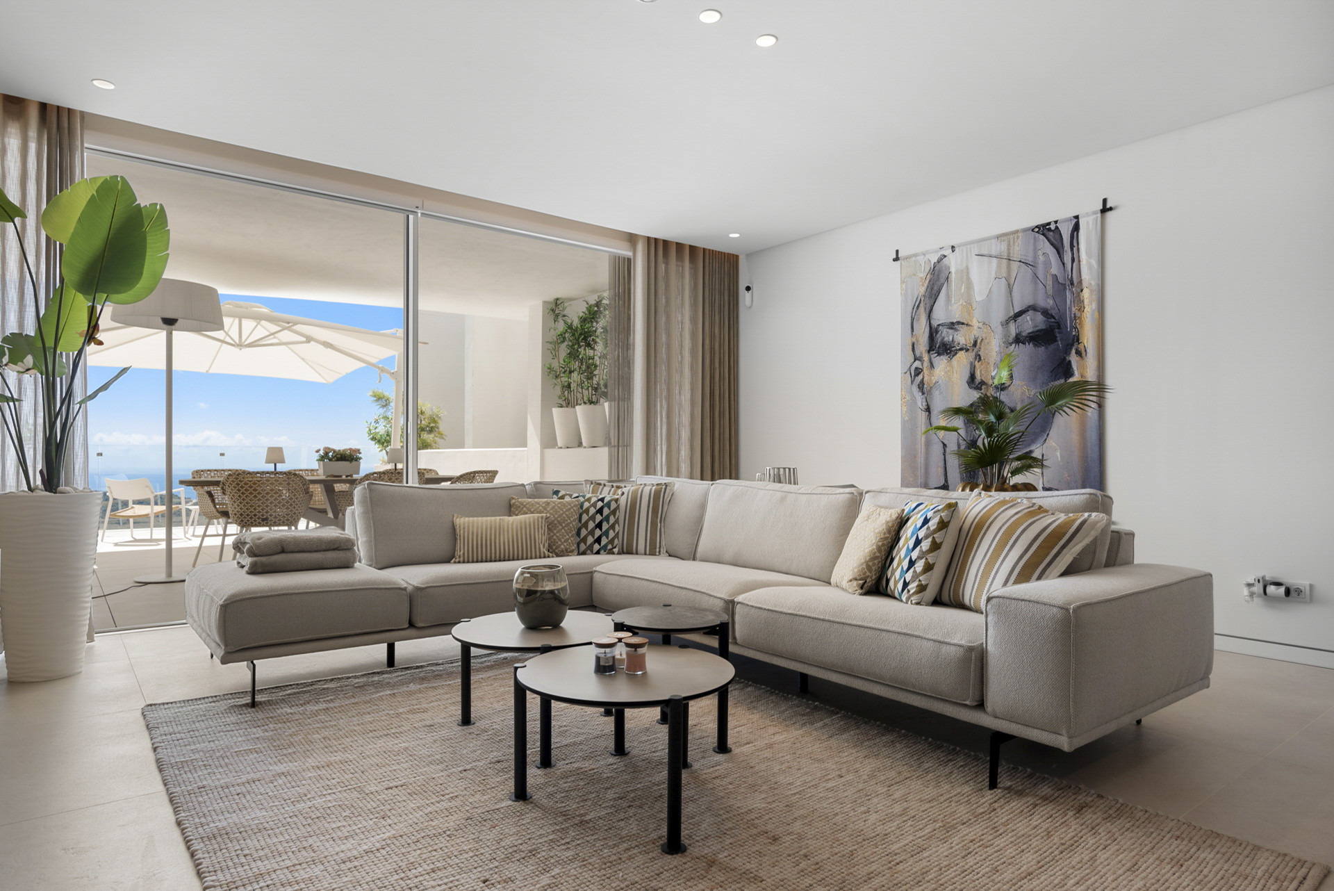 But the indulgence does not stop at the interior. The grand 64 m² terrace, easily the crown jewel of this home, extends the living space beyond four walls, offering panoramic views that stretch across the Mediterranean, a sight so captivating it renders one speechless. With ample space for outdoor entertaining or quiet reflection, the terrace is as much a living room as the indoor spaces themselves, allowing for alfresco dining, lounging, or simply taking in the sun-drenched vistas.