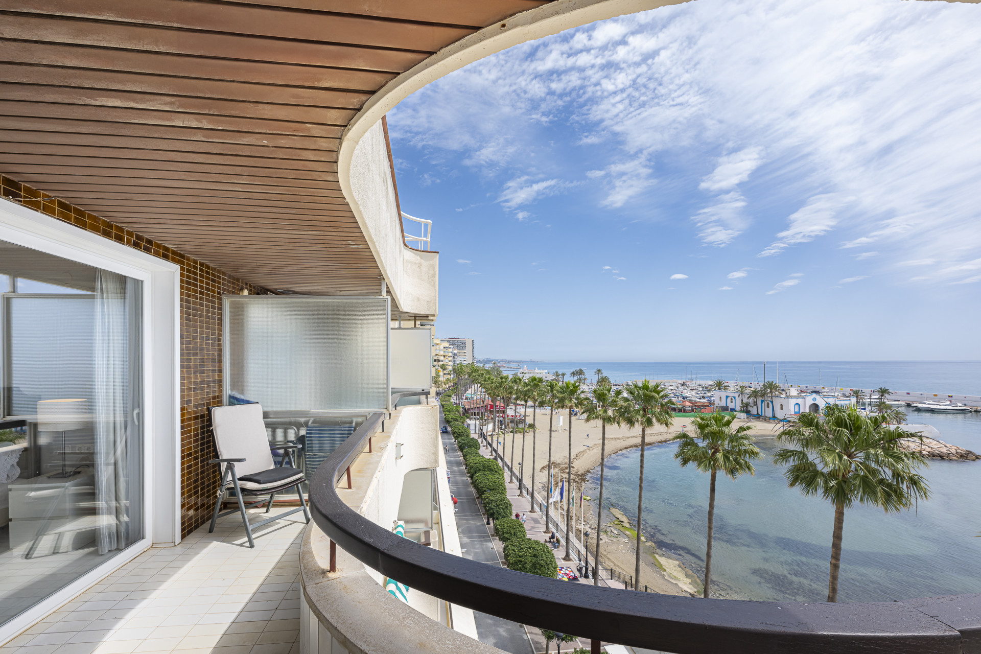 JUST-V2305Located in one of the most prestigious buildings on Marbella’s seafront promenade, this exclusive 150 m² property offers the perfect combination of style, natural light, and a privileged location.