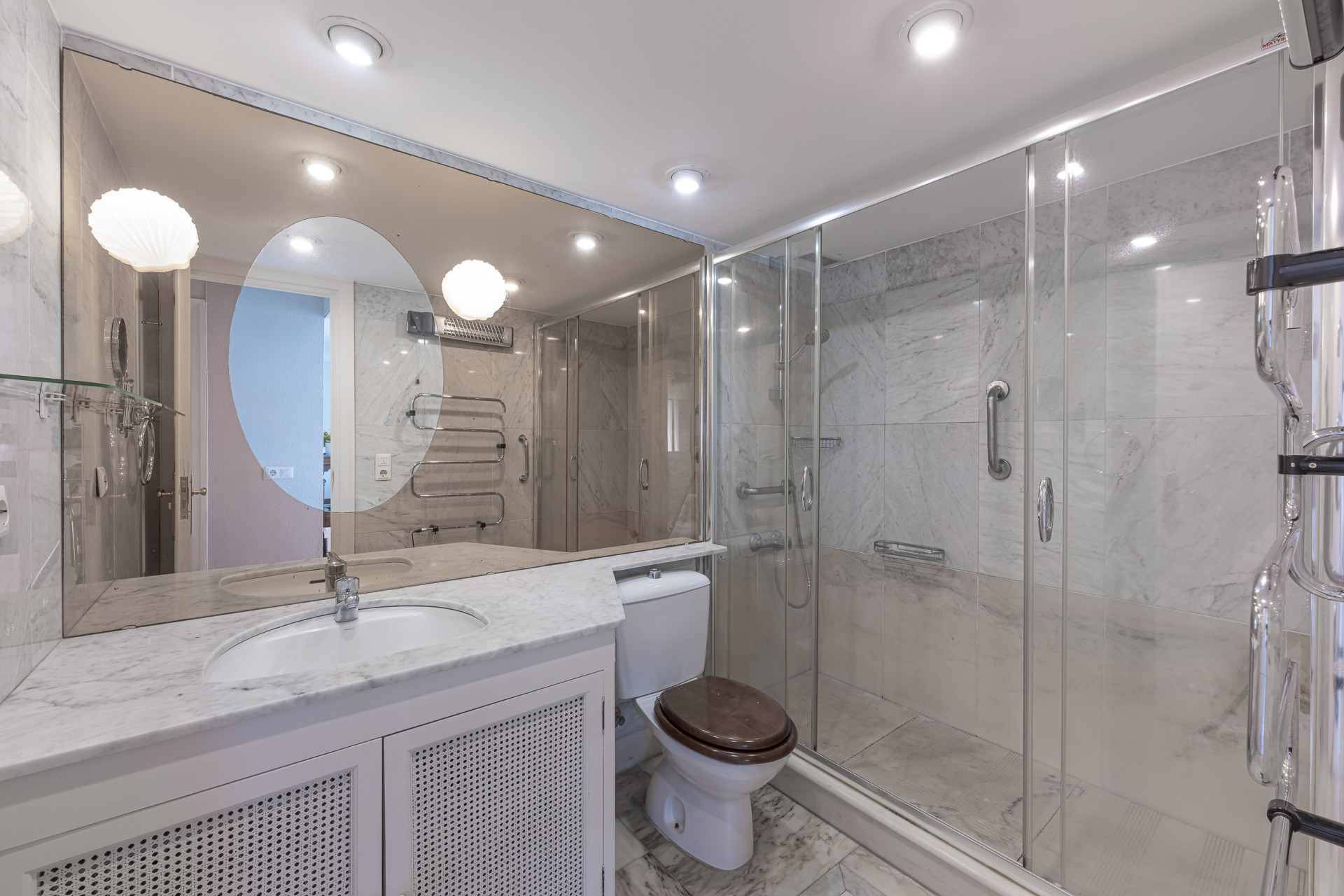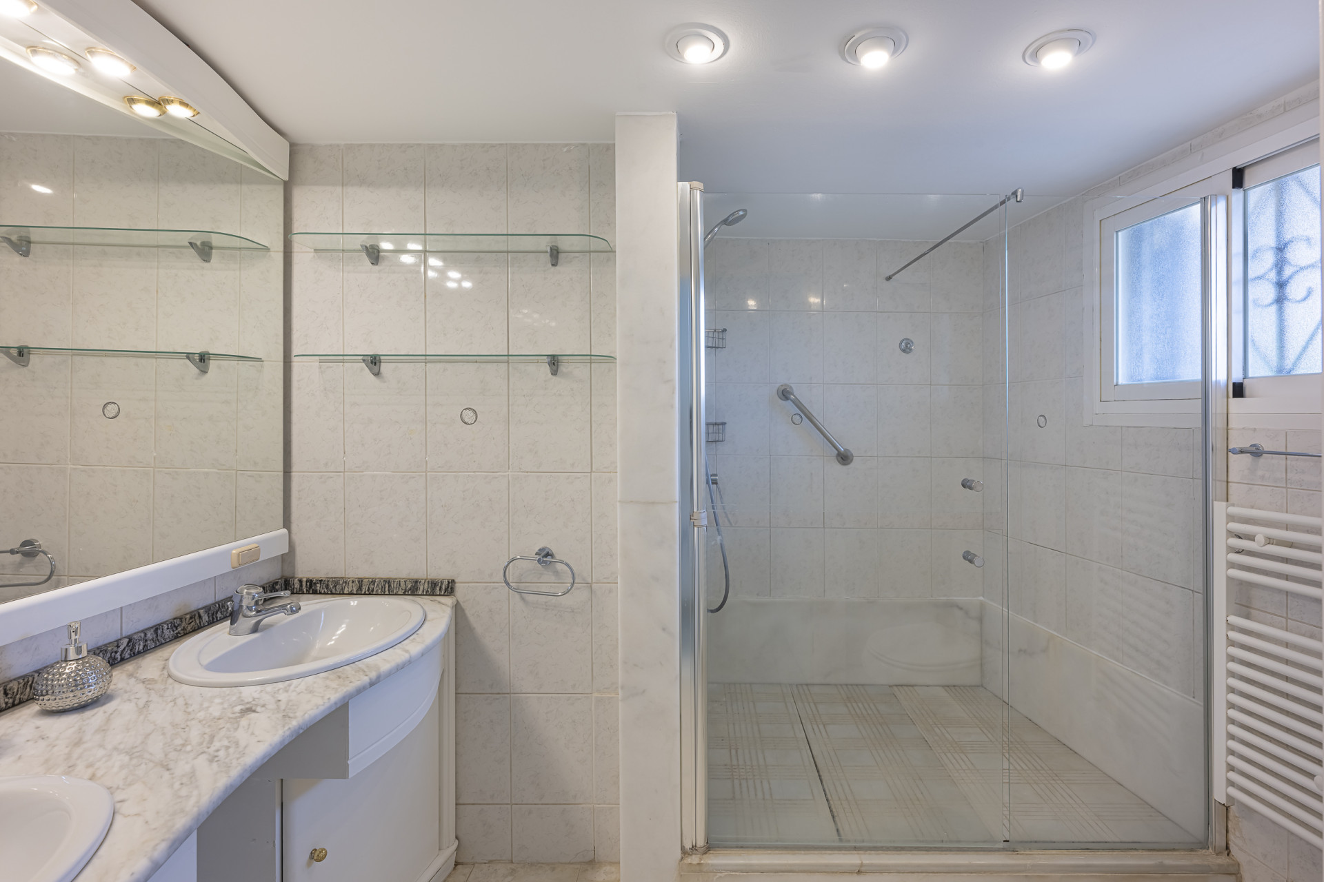 The two generously sized bathrooms are fitted with high-quality materials and large-format showers, offering a superior level of comfort.