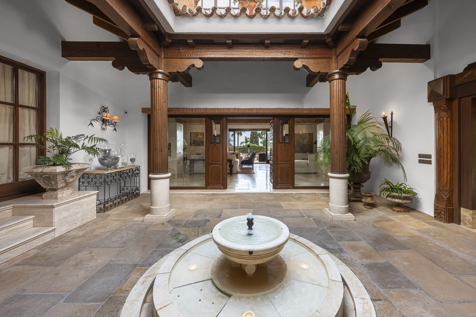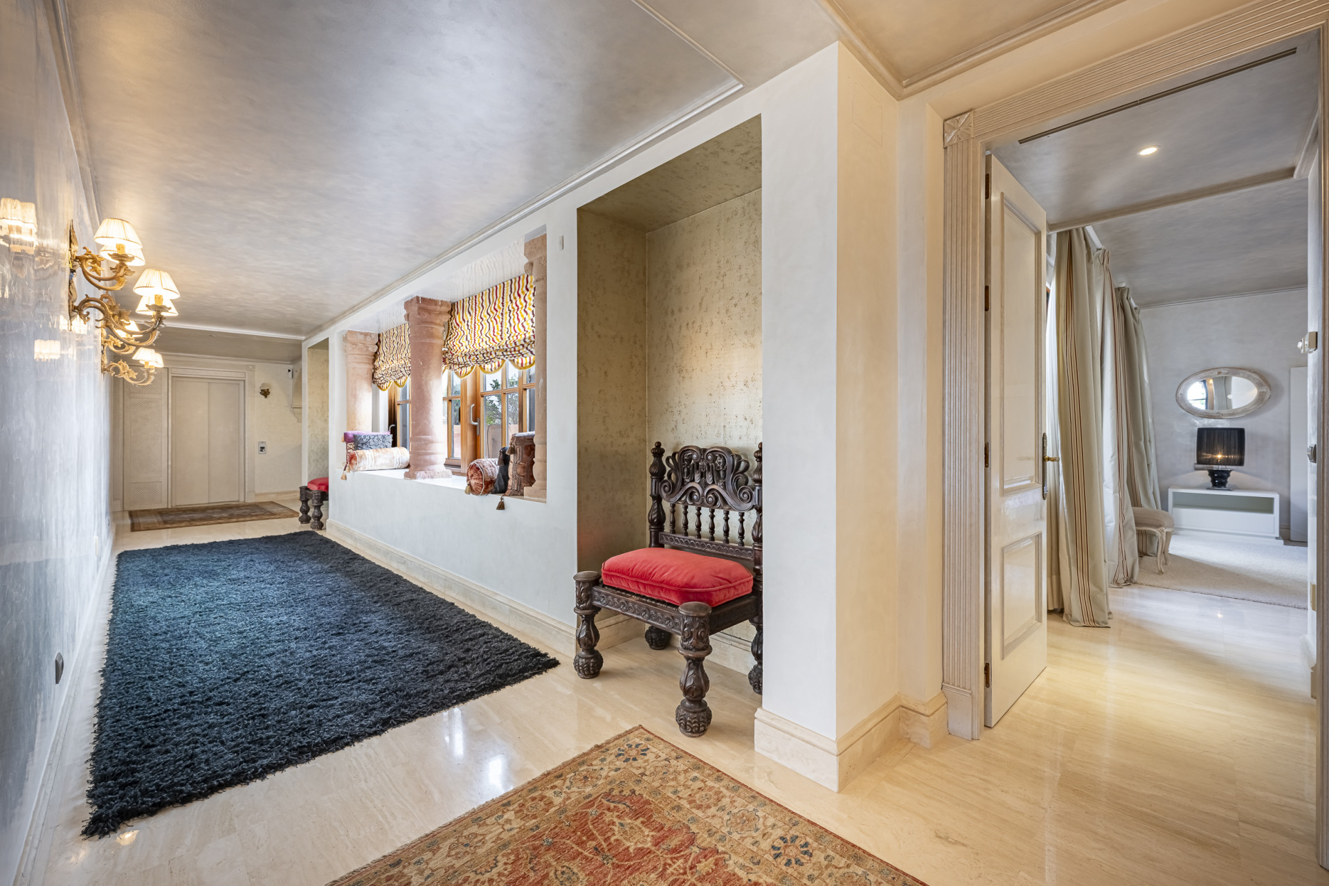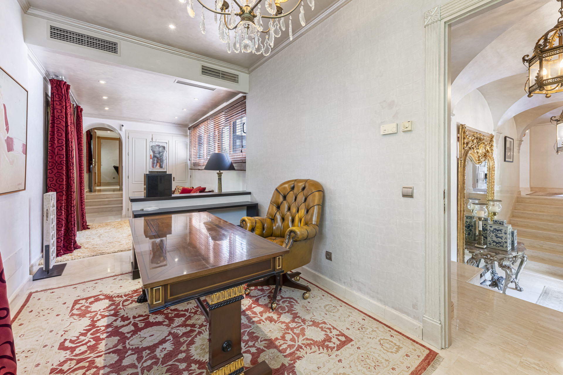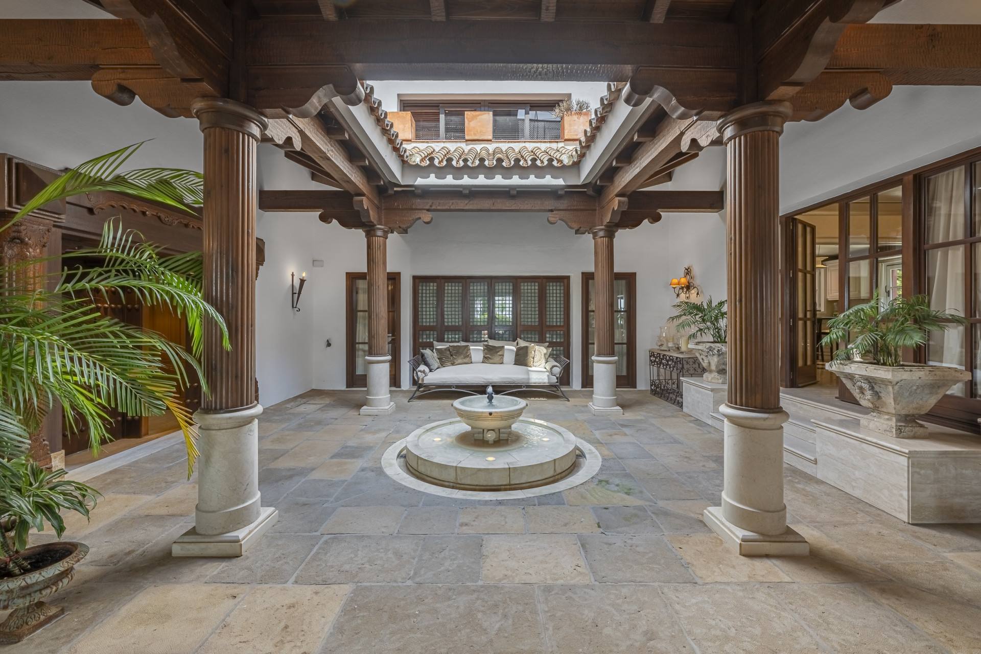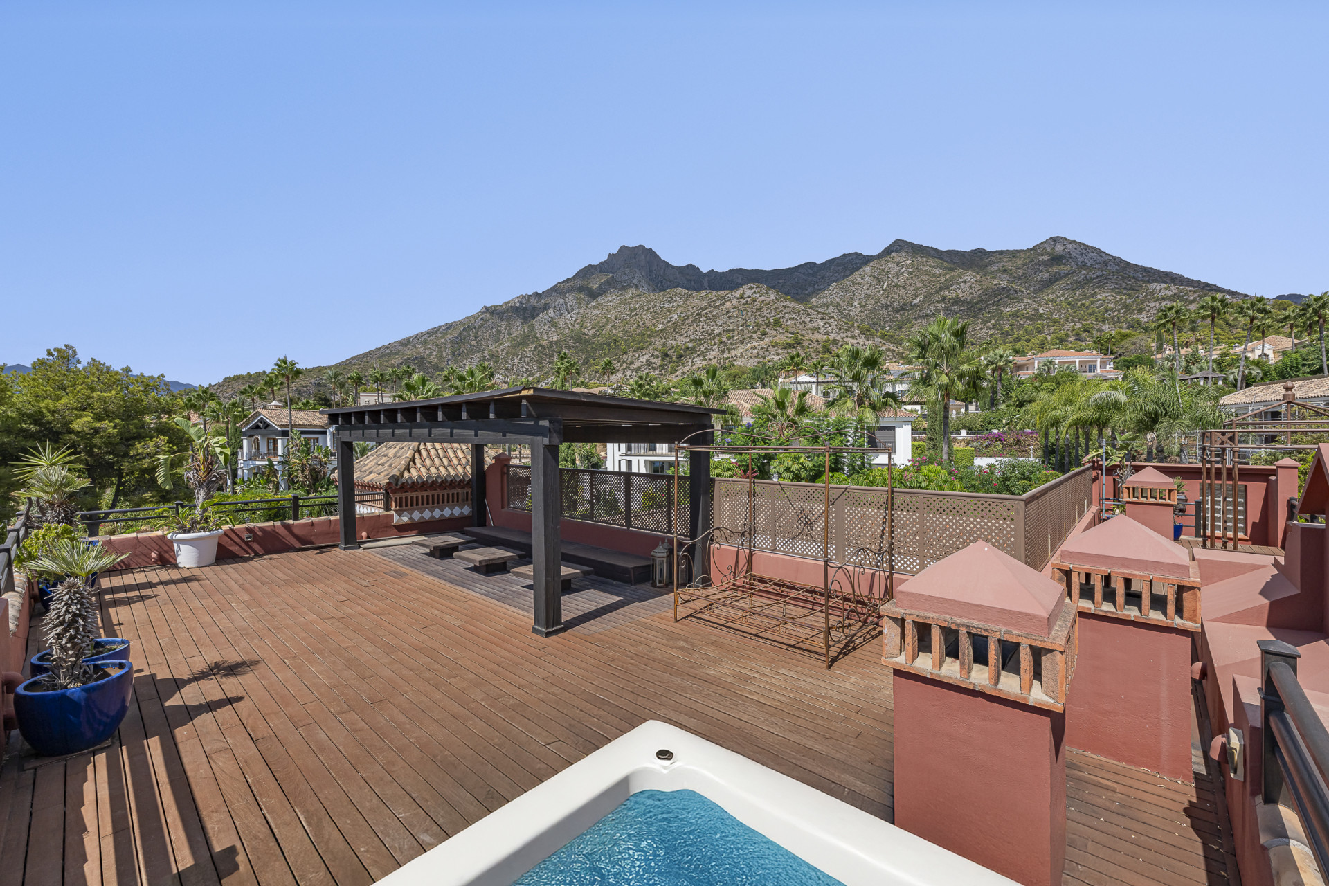 Spread over three levels and a magnificent solarium, it features an Andalusian courtyard with a sculptural fountain that connects the different areas of the main floor: guest bedroom, fully equipped traditional high-end kitchen, separate dining room and a spacious living room leading to the impressive terrace.