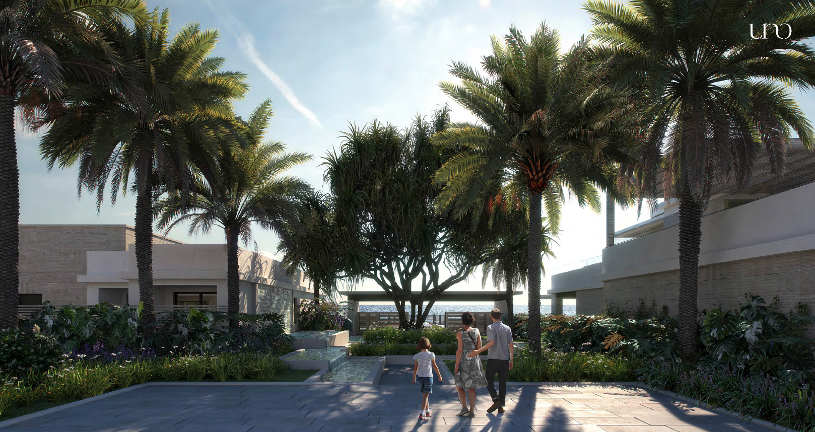 Designed across seven low-rise buildings and a handful of standalone villas, the architecture emphasizes minimalism and fluidity. Layouts are crafted to maximize sea views and natural light through pavilion-style configurations that curve gently to embrace landscaped gardens and water features. The developer holds a reputation for refined execution and understated luxury.